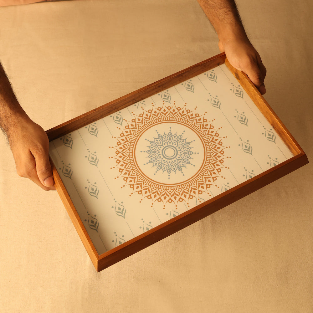 BambaiSe Rectangle Tray Teak Brown Mandala