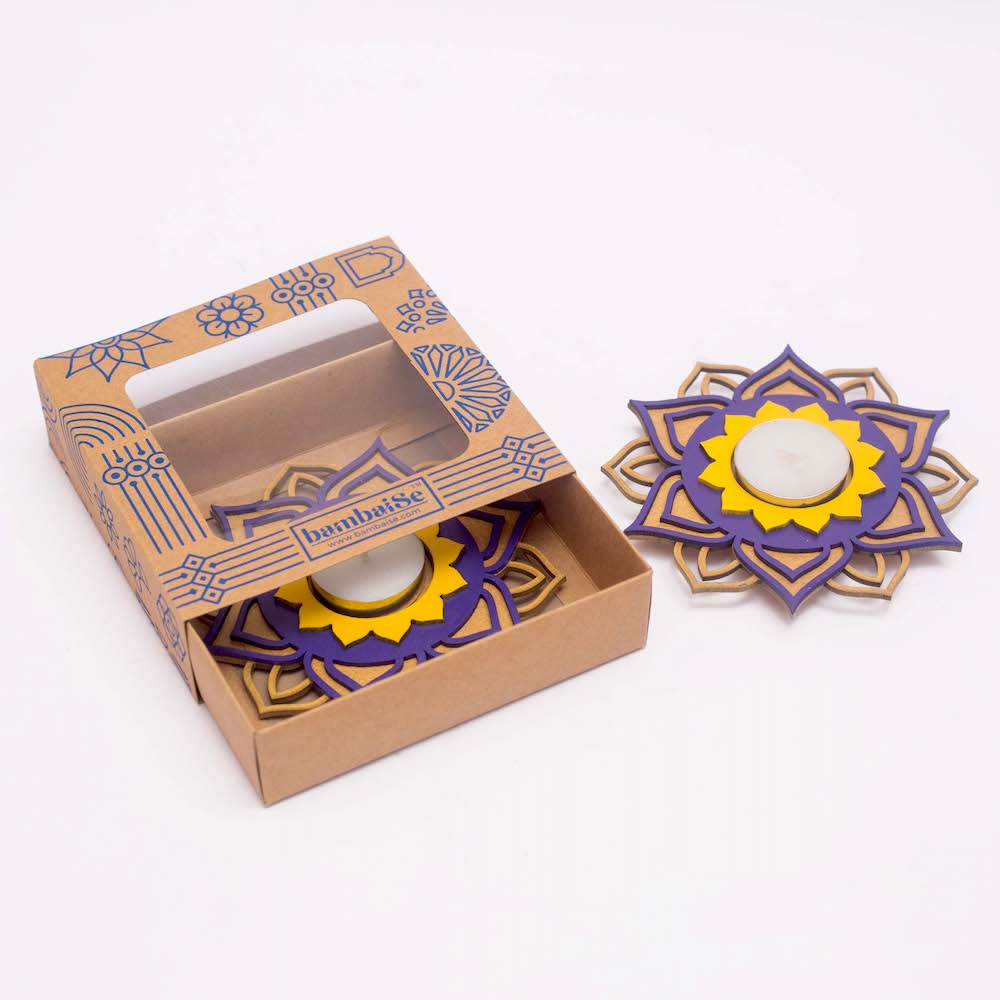 Bring in the festivities with our range of specially handcrafted Mandala T-light holders. Designed with multiple layers of art, the Mandala T-light emits positivity with its bright colours that lighten your surroundings. Its unique designer candle holder makes it a perfect gift for any festive occasion.