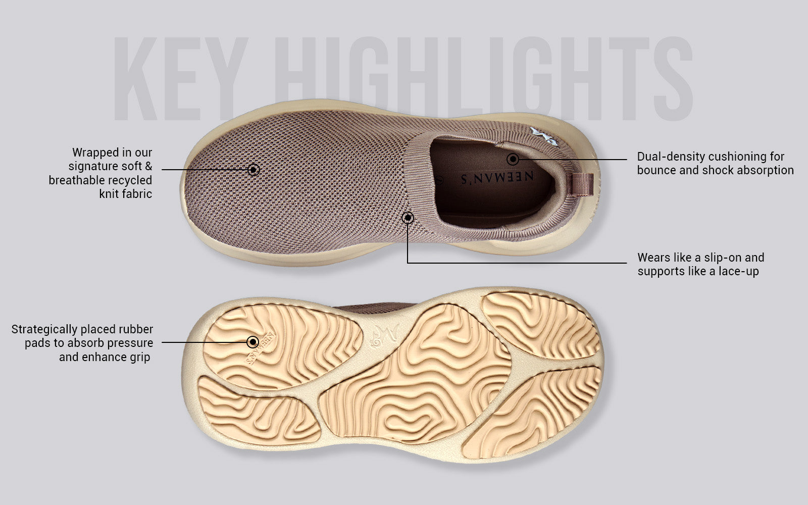 The 1.0 version of our signature ReLive Knit Slip Ons was one of the most talked about and highly reviewed shoes when it launched. And we just gave it some upgrades!