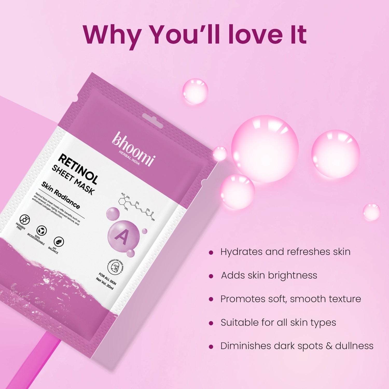 Forget empty promises; our mask delivers real improvements. Experience the difference with Bhoomi Herbal India Retinol Sheet Mask.