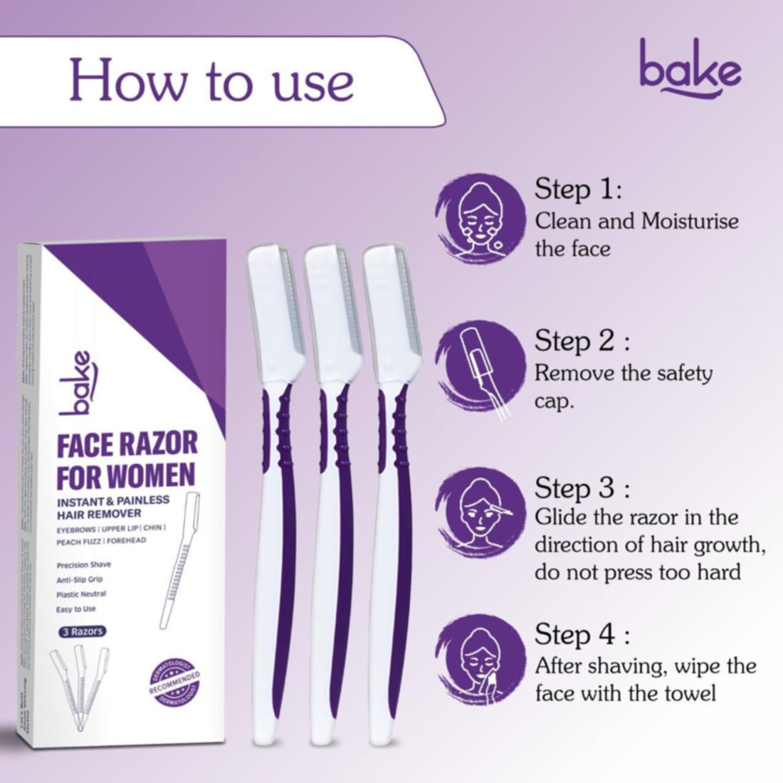 BAKE Reusable Face Razor For Women is crafted for effortless and painless removal of facial hair, including eyebrows, upper lip, chin, peach fuzz, forehead, unibrow, and sideburns. Enjoy precision shaving with an anti-slip grip for maximum control and comfort. The razors ensure an instant glow, leaving your skin flawless and hair-free. Made with plastic-neutral materials, these razors are environmentally friendly and reusable, promoting sustainable beauty practices.