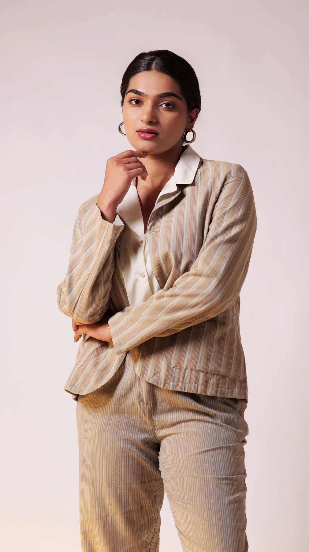 - The soft, earthy striped pattern is subtle yet eye-catching, blending neutral tones that add warmth and sophistication to your wardrobe. Ideal for both minimalists and those who love understated elegance.