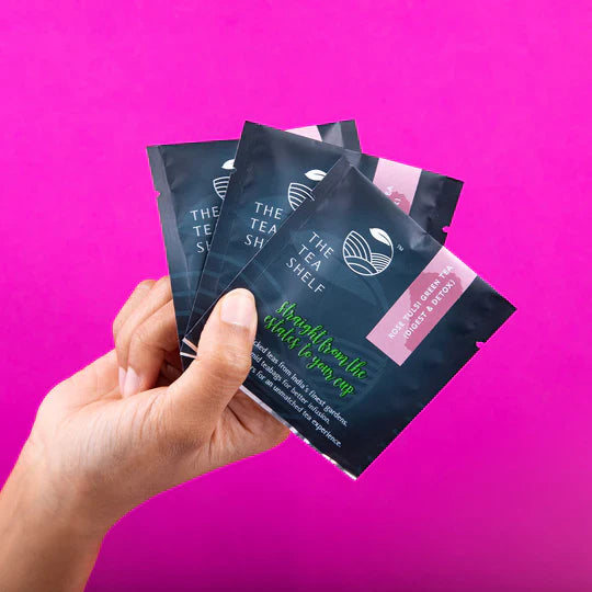 Having a light yellow colour with a tinge of pink, it is a cup of Green Tea infused with floral notes of Rose Petals & calming Tulsi Leaves.