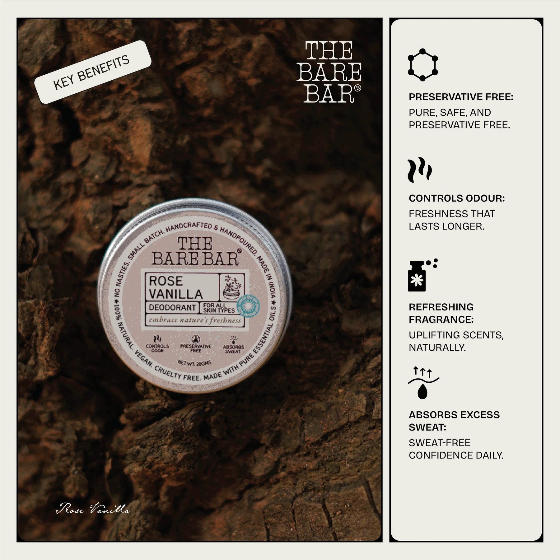 The perfect mix of floral elegance and cosy warmth! This deodorant blends the soft scent of roses with the comforting sweetness of vanilla, keeping you fresh, odour-free, and lightly scented all day. It’s like wearing your favourite floral gourmand perfume—without the toxins!.