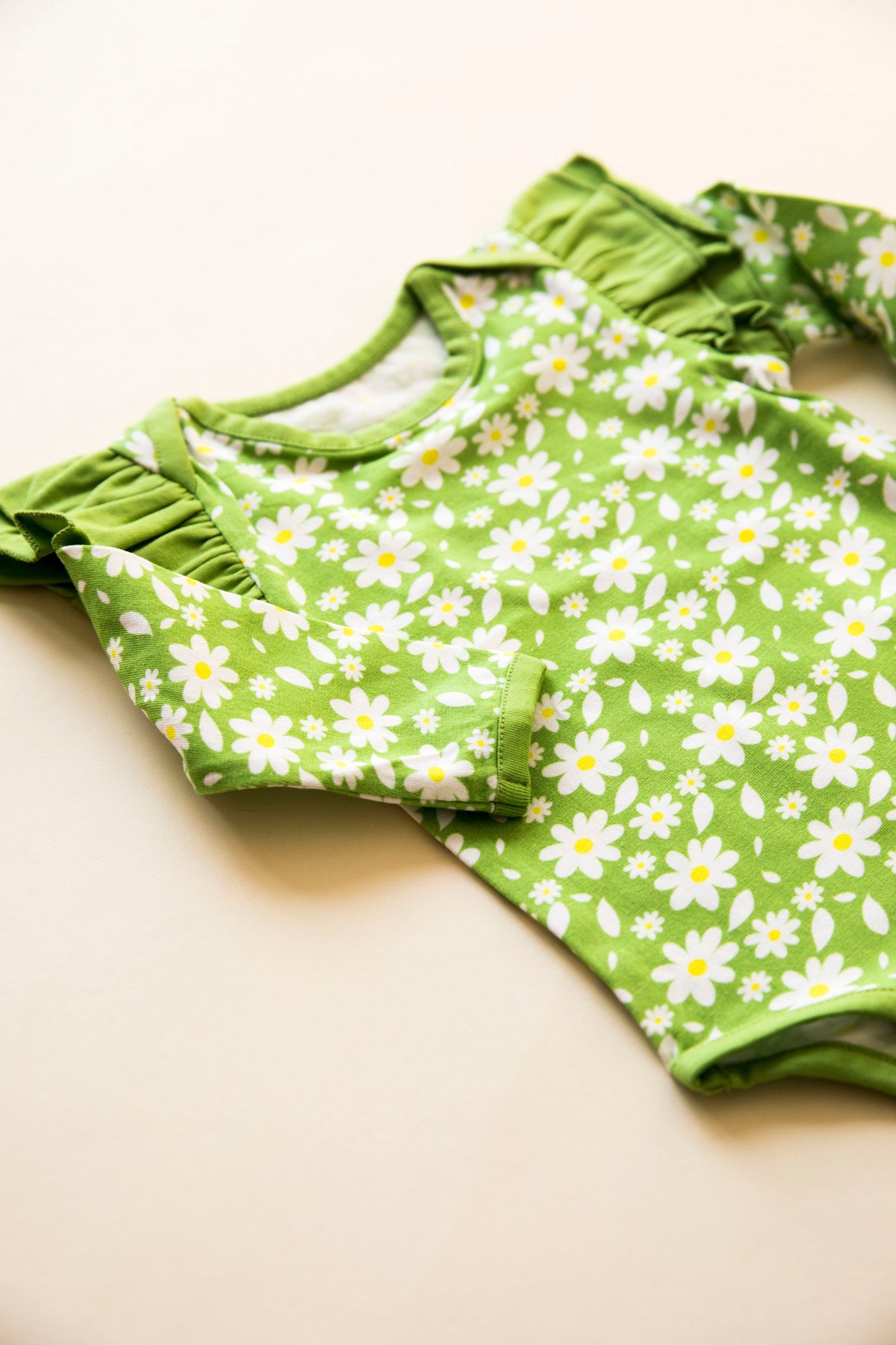 Keep your little one full of cheer in this ruffle full-sleeve body suit available in Indian Flora White and Breezy Daisy prints. Made with 100% Organic Cotton it's snuggly soft and always comfortable. Pressable studs on the crotch make diaper changes a breeze.