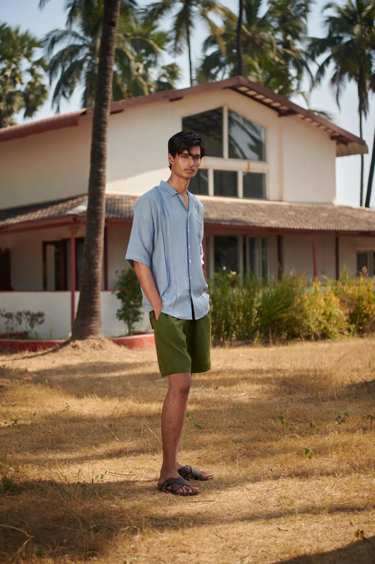 Tailored from 100% pure linen, these lightweight golf shorts are cut just above the knee with a clean, structured fit. Designed with side pockets, and a minimal waistband, they balance easy movement with everyday polish. Whether paired with a popover or layered under a jacket, they’re built for warm days, long walks, and sharp transitions. Crisp, breathable, and quietly confident — linen made to move.