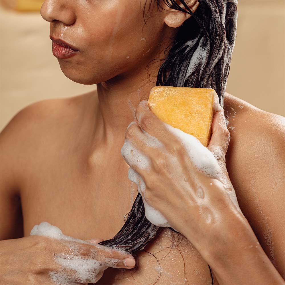 Use lukewarm water to wet your scalp, hair, and the shampoo bar. Avoid hot water, as it depletes your scalp of its natural oils and prevents the bar from lathering.