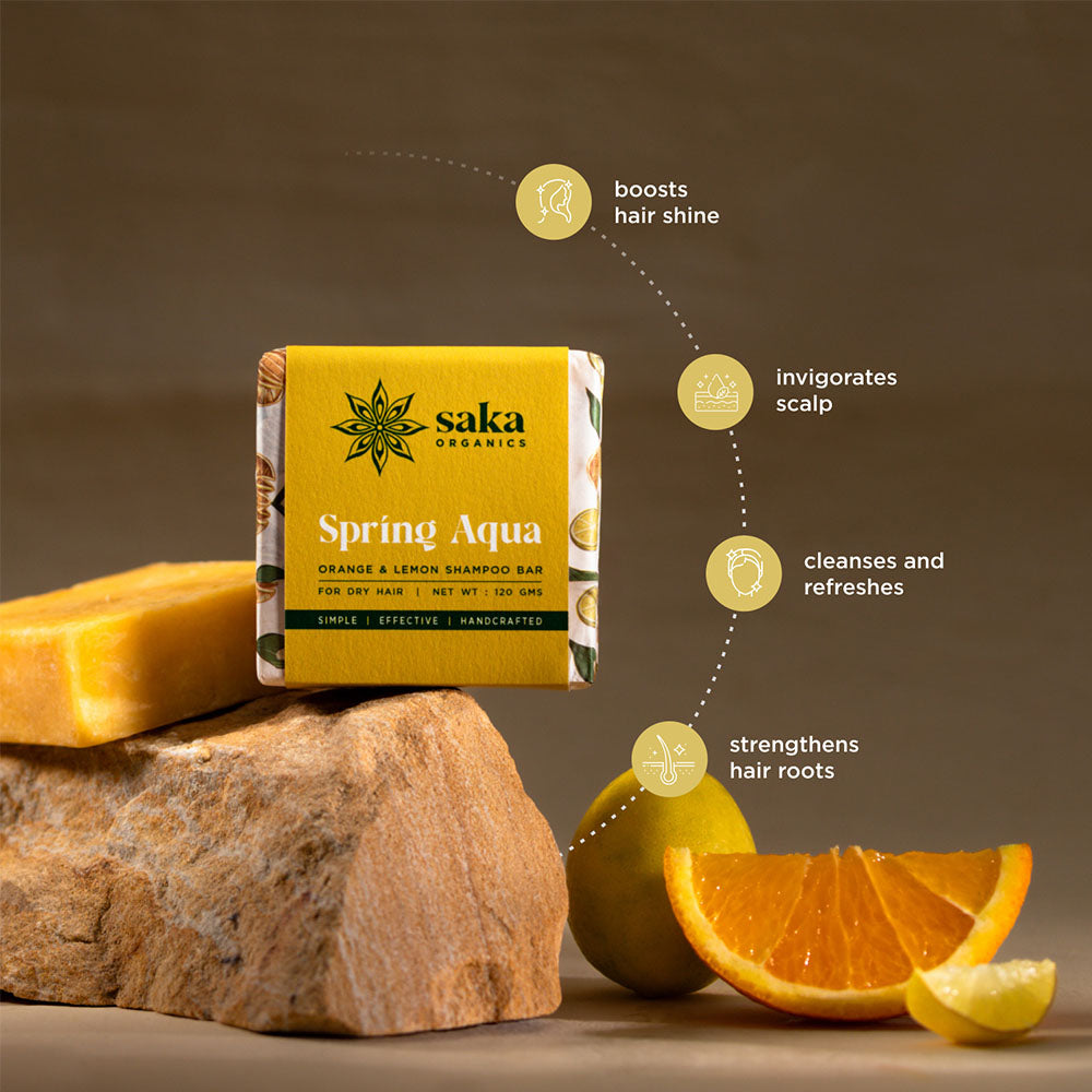 Saka Organics - Spring Aqua | Handmade Orange and Lemon Shampoo Bar | Natural Hair Care for Dry Hair - 120gm