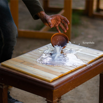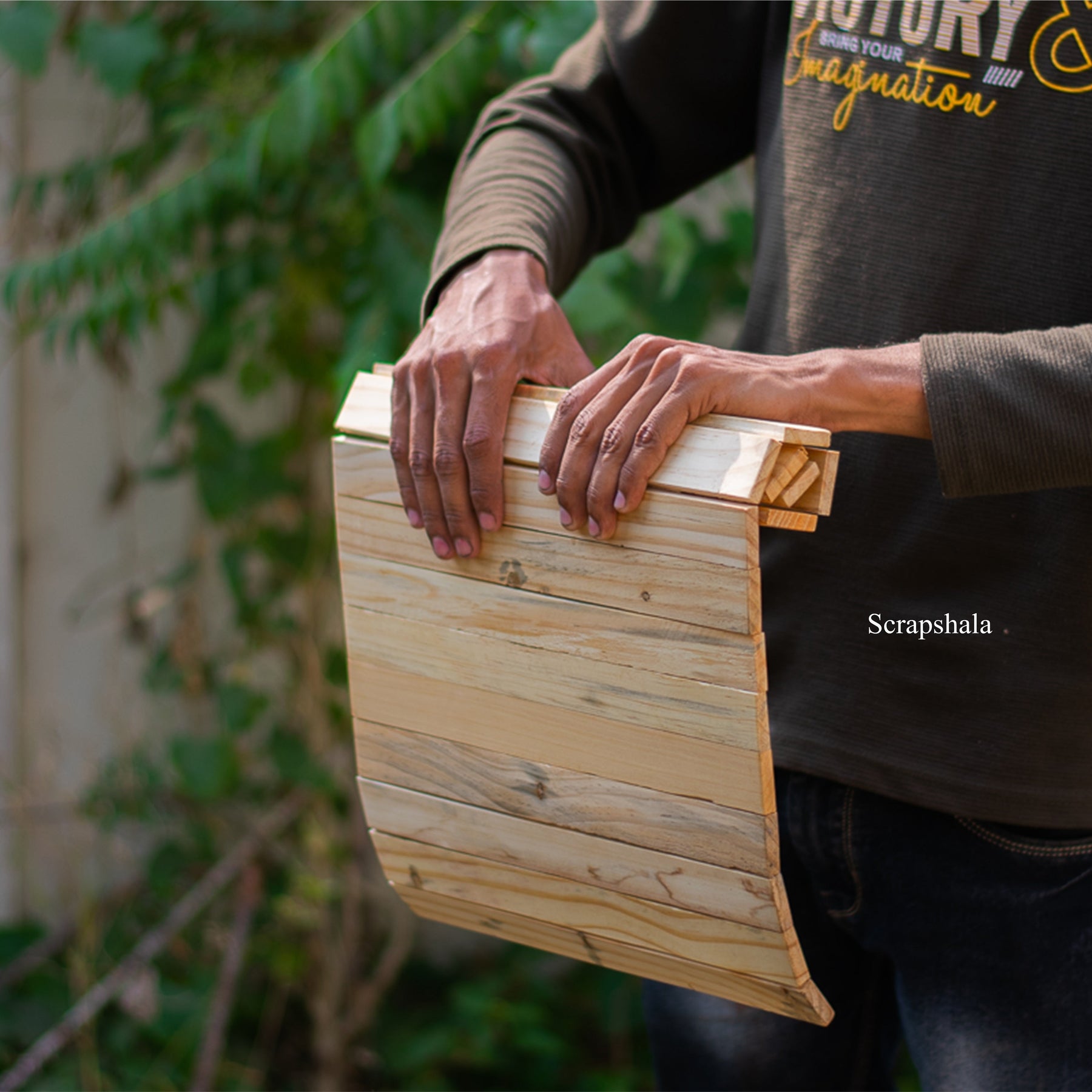 Scrapshala Salvage Table Placement | Natural Pine | Foldable | Stain-Proof