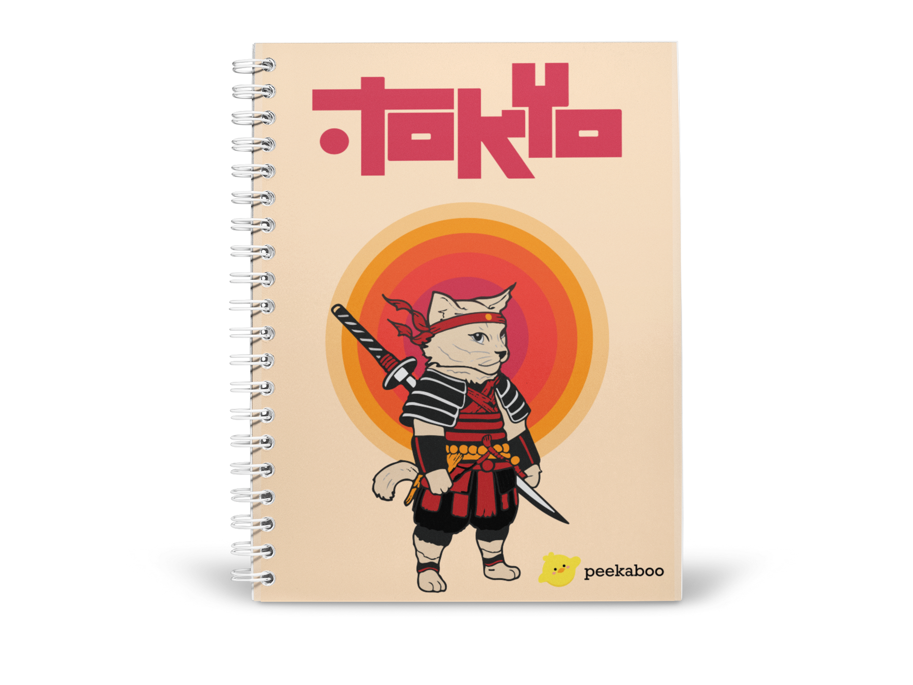 Samurai Cat Peekaboo Notebook - A5 Size Wiro Spiral Binding