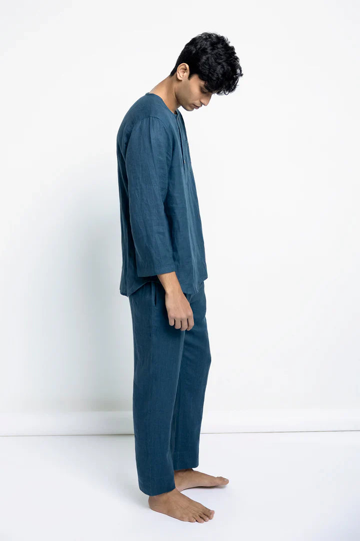 Saphed Indigo Linen Men's Pyjama Set