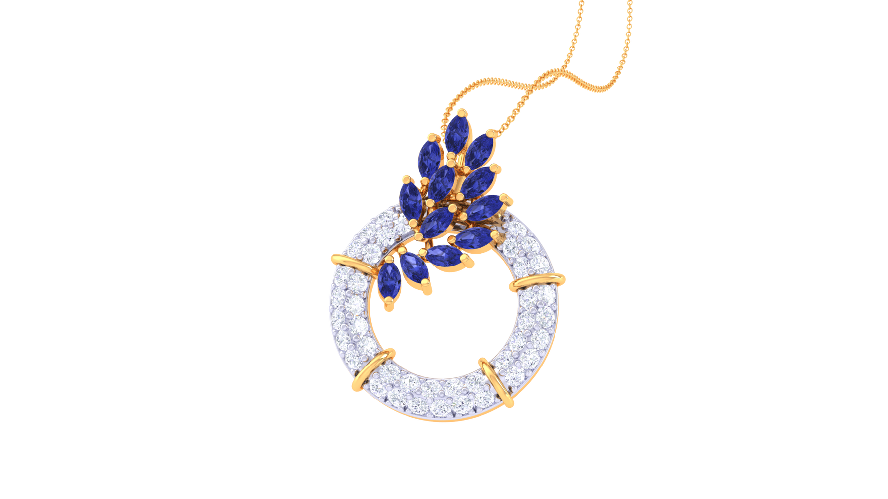 Diamond By Tilesh Sapphire Leaf Wreath Pendant – Marquise Cut Stones with Diamond Halo
