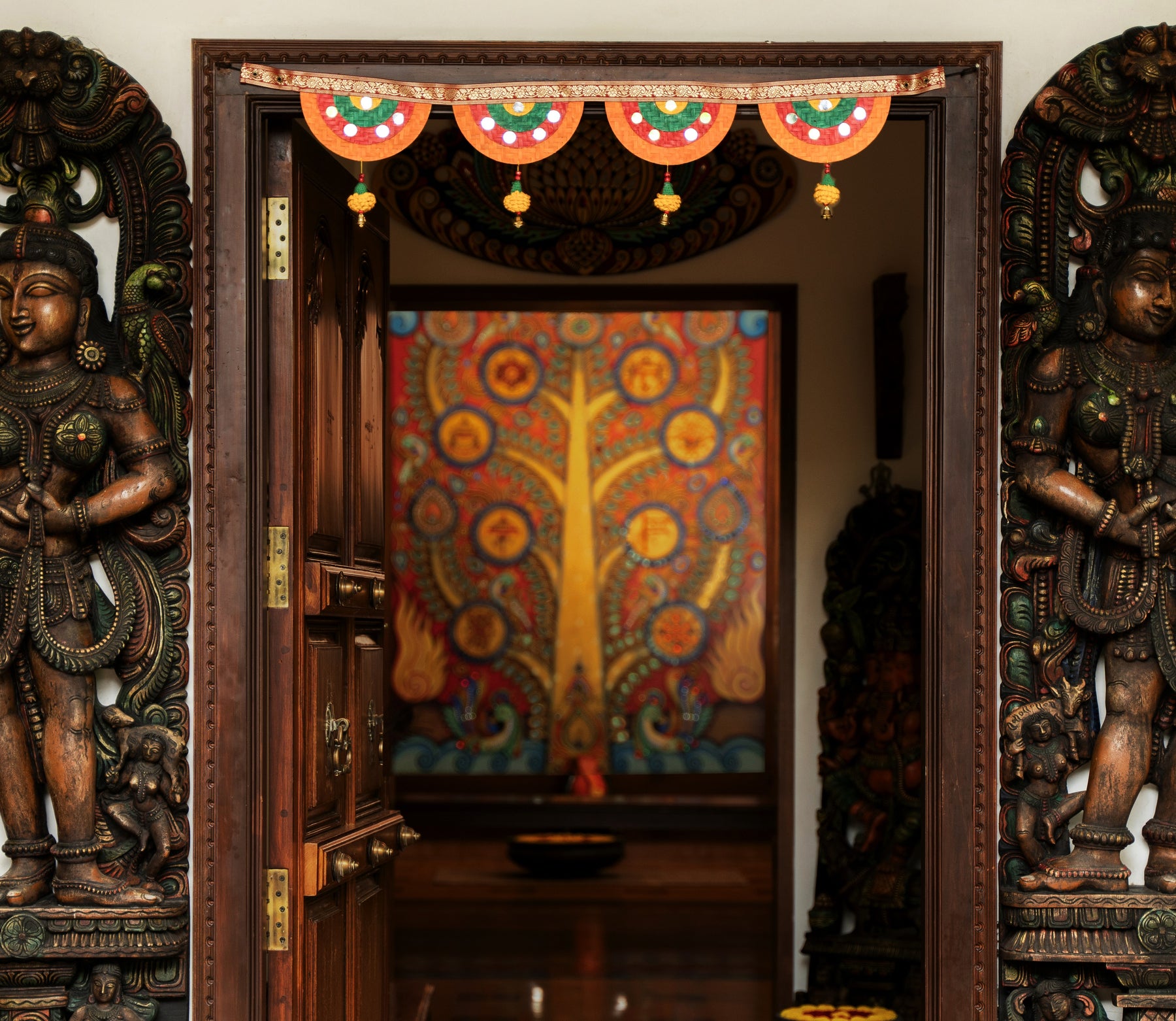 Handcrafted from natural bamboo, this eco-friendly toran adds a rustic charm to doorways and festive spaces. Lightweight, durable, and sustainable—perfect for traditional décor with a conscious touch.