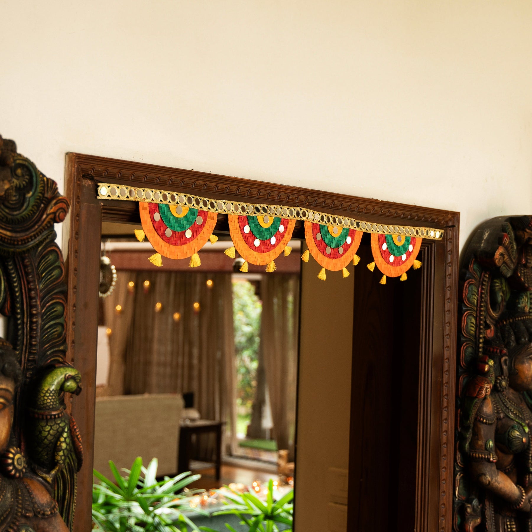 Handcrafted from natural bamboo, this eco-friendly toran adds a rustic charm to doorways and festive spaces. Lightweight, durable, and sustainable—perfect for traditional décor with a conscious touch
