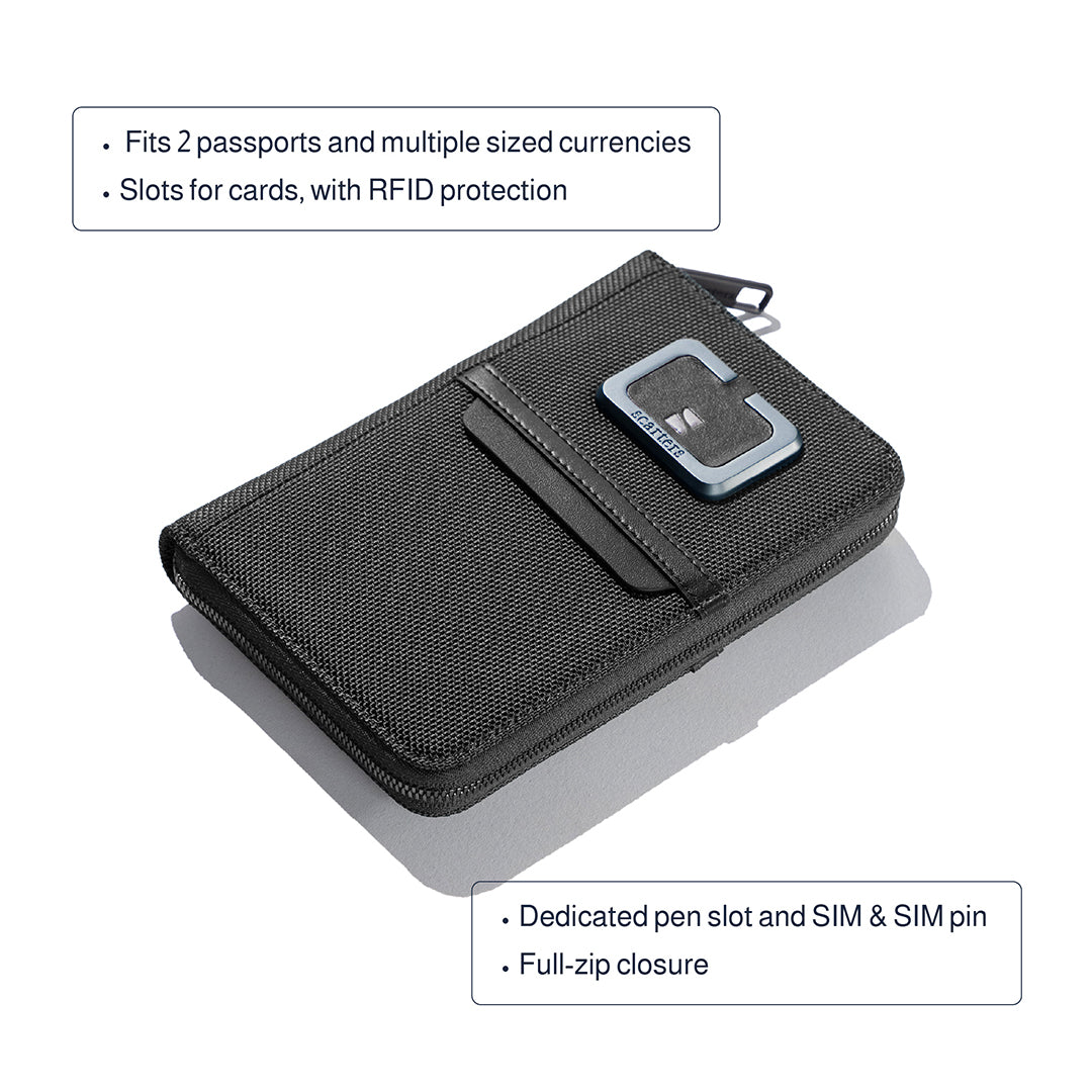 • Passport Zip Wallet — A secure zip-around design with dedicated slots, crafted to keep passports, cards, and travel essentials neatly organised.