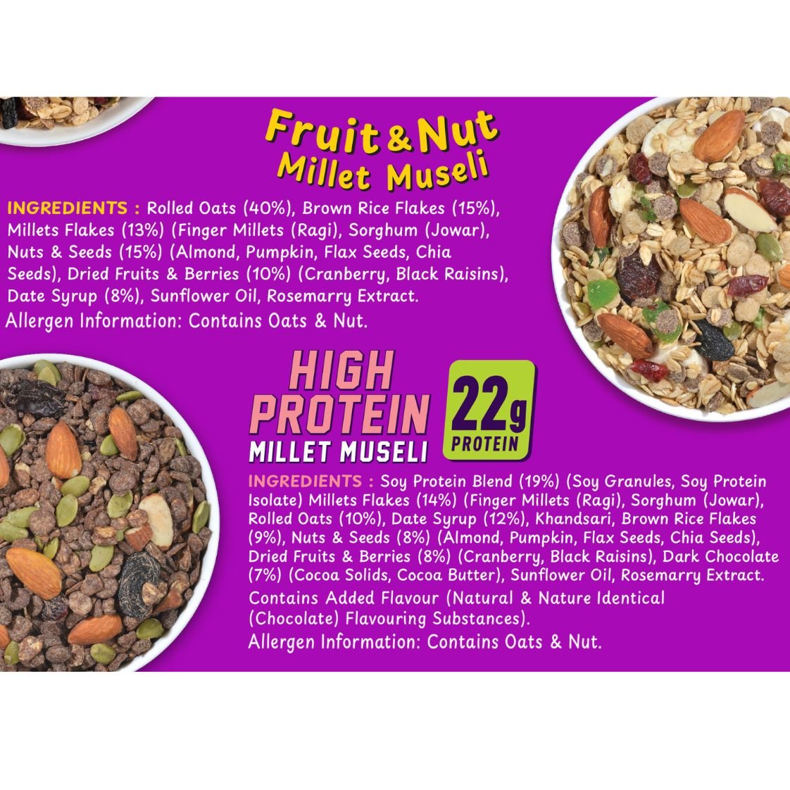 Scoopeat Pack of 2 Fruit & Nut Muesli - 750gm + 22gm High Soy Protein Muesli- 750gm