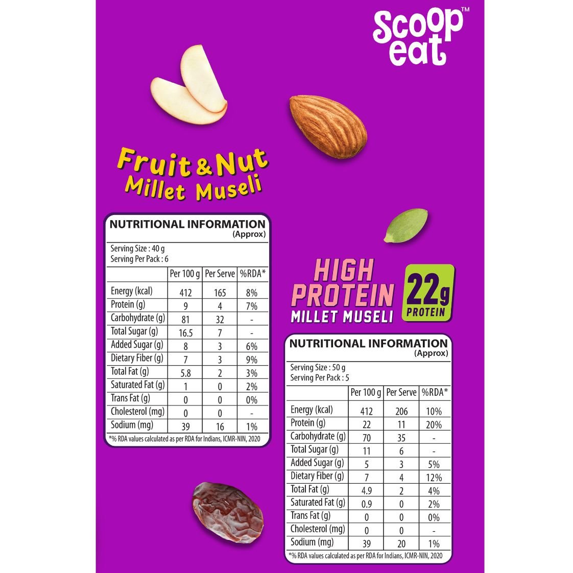 Scoopeat Pack of 2 Fruit & Nut Muesli - 750gm + Scoopeat 22gm High Soy Protein Muesli - 250gm - Suspire