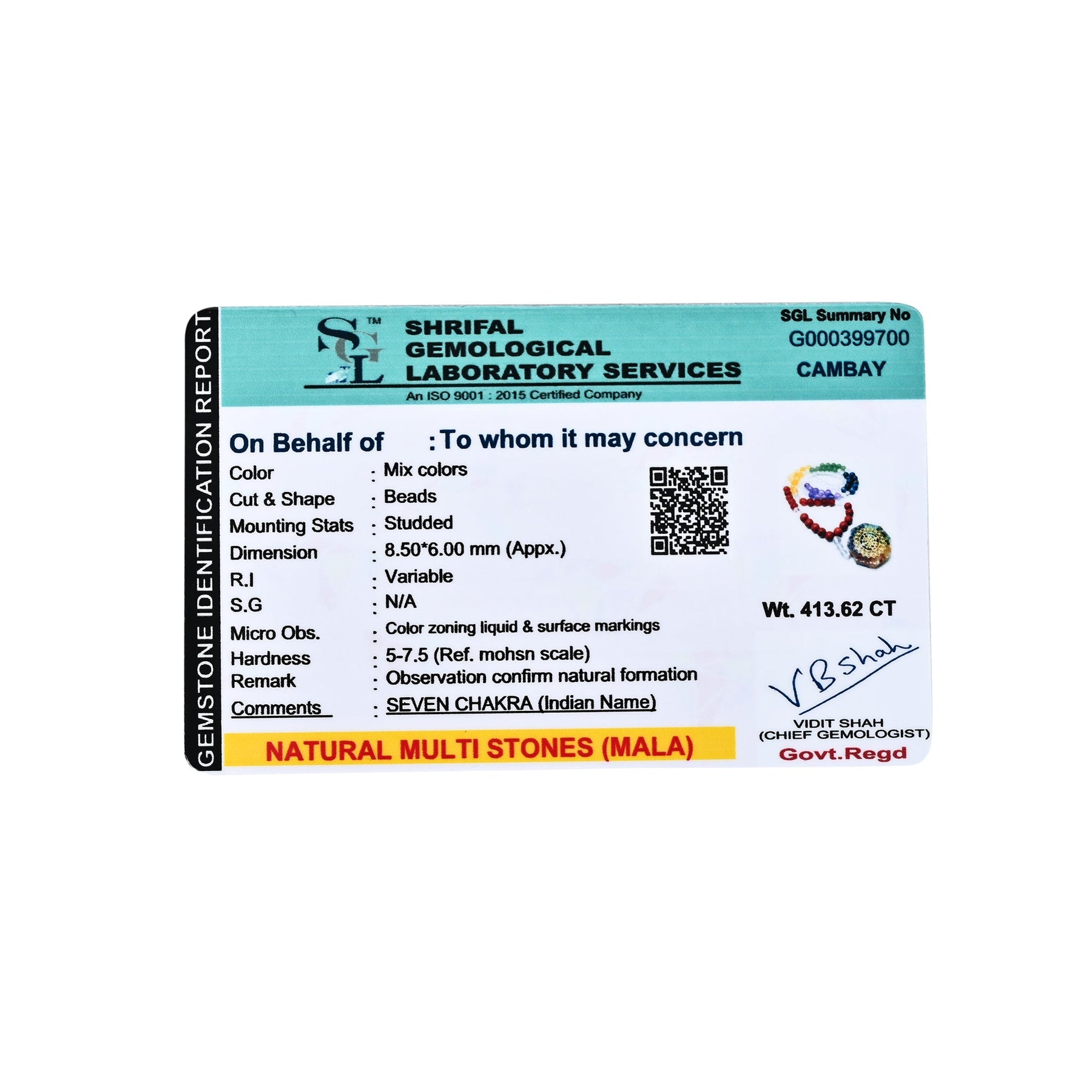 Elevate your spiritual journey with our Certified Seven Chakra Mala, handcrafted with 100% natural healing crystals. Each of the 108+1 beads is carefully chosen to represent the seven chakras – Root, Sacral, Solar Plexus, Heart, Throat, Third Eye, and Crown – helping you stay grounded, centered, and aligned.