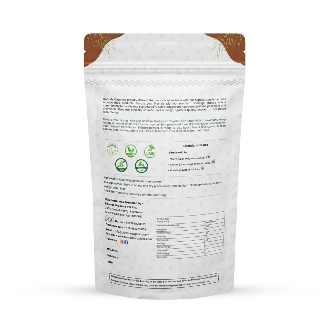 Bionode Organics Shiitake Mushroom Powder (100g), Natural Cholesterol Regulator & Cardiovascular Support, Rich in Vitamins B2, B5, B6 & D, Boosts Immunity and Overall Wellness