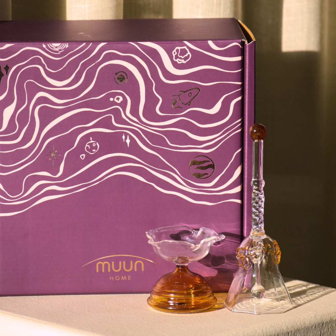 Available in three colors - amber, pink, and cobalt blue - this set is crafted from durable borosilicate glass, often used in laboratories, ensuring they are resistant to flames and breakage.