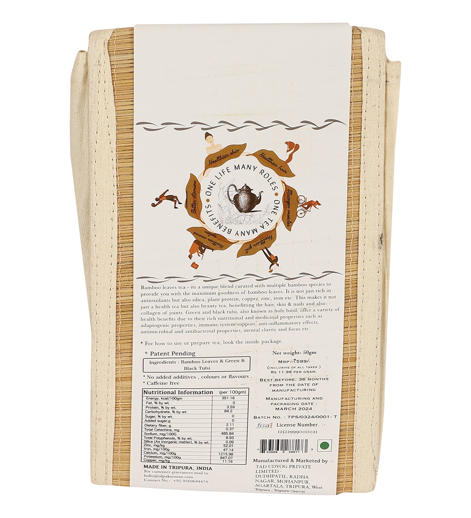 Bamboo leaves tea 50 gms pack. Price per unit - ₹11.98 / 1gm