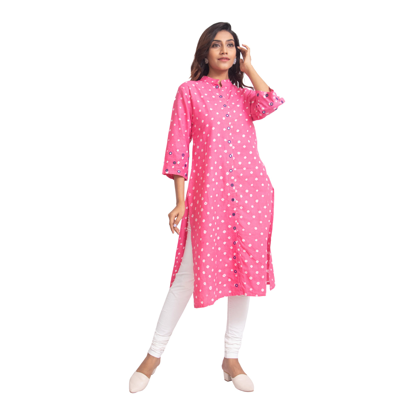 This Khadi muslin bandhani kurti is beautiful, with intricate and detailed work. The timeless look is reminiscent of our heritage, while the soft fabric makes it perfect for layering over your favorite outfits.