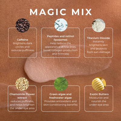• Brightens & fades dark circles - Retinol Liposomes + Caffeine powerfully target pigmentation.