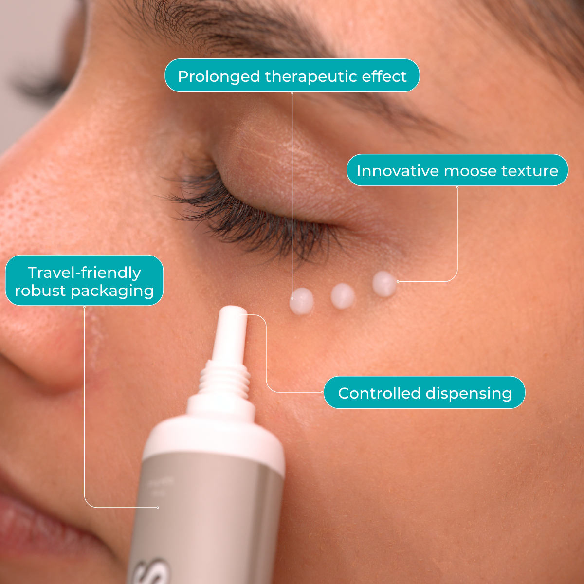The innovative mousse glides like a cloud and ensures it stays where it belongs, unlike other under-eye (creams, oil, and serum based) products in the market that migrate. It also works great as a primer under the eye make up to rectify the creases.