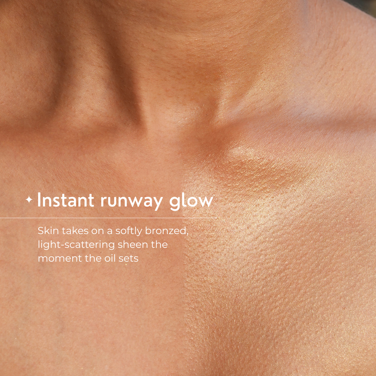Molten Gold gives your skin an instant, sophisticated glow with micro-fine champagne shimmer that looks elegant - not chunky. Formulated by a blend of 10 nourishing botanical oils, including jojoba, sweet almond, wheat germ, and phytosqualan, it deeply hydrates while absorbing in seconds for a dry-touch, non-greasy finish. The result is skin that looks bronzed, soft, and naturally radiant without any heaviness or stickiness.