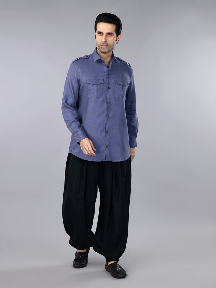 Effortless Sophistication in Slate Grey Elevate your casual wardrobe with this Slate Grey Linen Pocket Shirt—a seamless blend of functionality and refined style. Crafted from breathable linen, this shirt is perfect for those who appreciate comfort without compromising on elegance. The design features two structured flap pockets on the chest, adding a utilitarian charm, while shoulder epaulets lend a subtle hint of military-inspired sophistication. Its tailored fit and curved hem make it equally versatile for tucking in or wearing untucked, ensuring a polished look for any occasion. The slate grey hue is universally flattering and easy to style—pair it with classic chinos for a laid-back office vibe or dark denim for a night out. With its earthy wooden buttons and minimalistic detailing, this shirt is a must-have for the modern man’s wardrobe.
