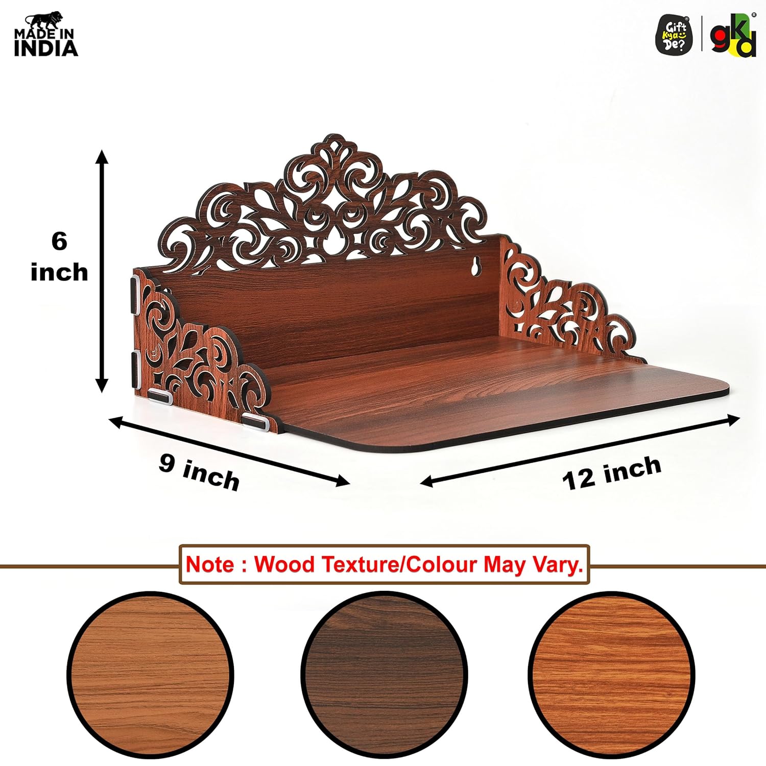 Bring home serenity with the Gift Kya De® Wooden Pooja Mandir – Classic Design. Whether placed on a table or mounted on a wall, this temple shelf brings divine grace to any corner. Perfect for compact homes, it offers a peaceful space for idols and daily worship. The floral cutwork adds a traditional touch, while its DIY structure ensures easy setup.