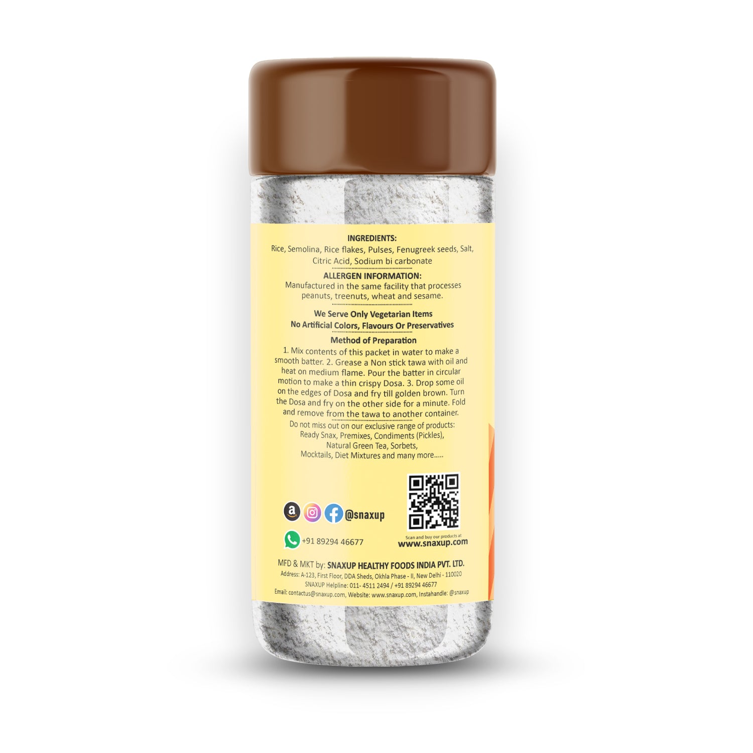 Snaxup Plain Dosa Mix makes it easy to enjoy delicious, crispy dosas without the long preparation time. This instant ready-to-cook mix allows you to whip up a traditional South Indian breakfast in minutes. Simply add water, mix, and cook for a golden, flavorful dosa that pairs perfectly with chutney or sambar. Ideal for busy mornings or anytime you crave the authentic taste of dosa without the hassle.