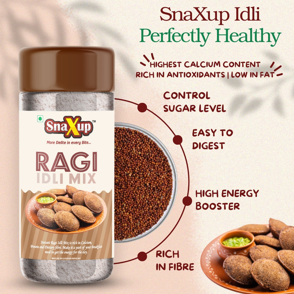 Snaxup Instant Ragi Idli Mix offers a healthy twist to your traditional South Indian breakfast with the goodness of ragi (finger millet).