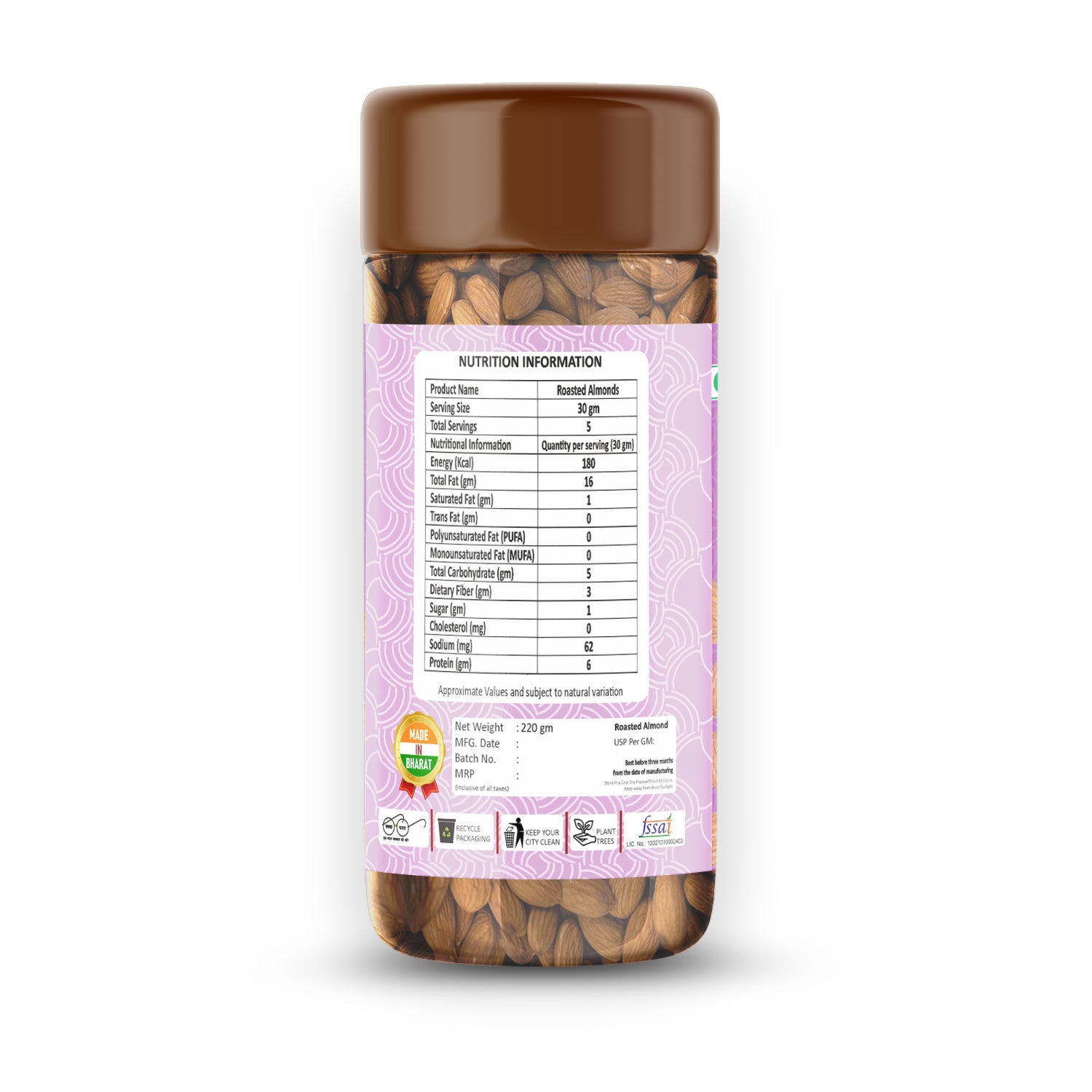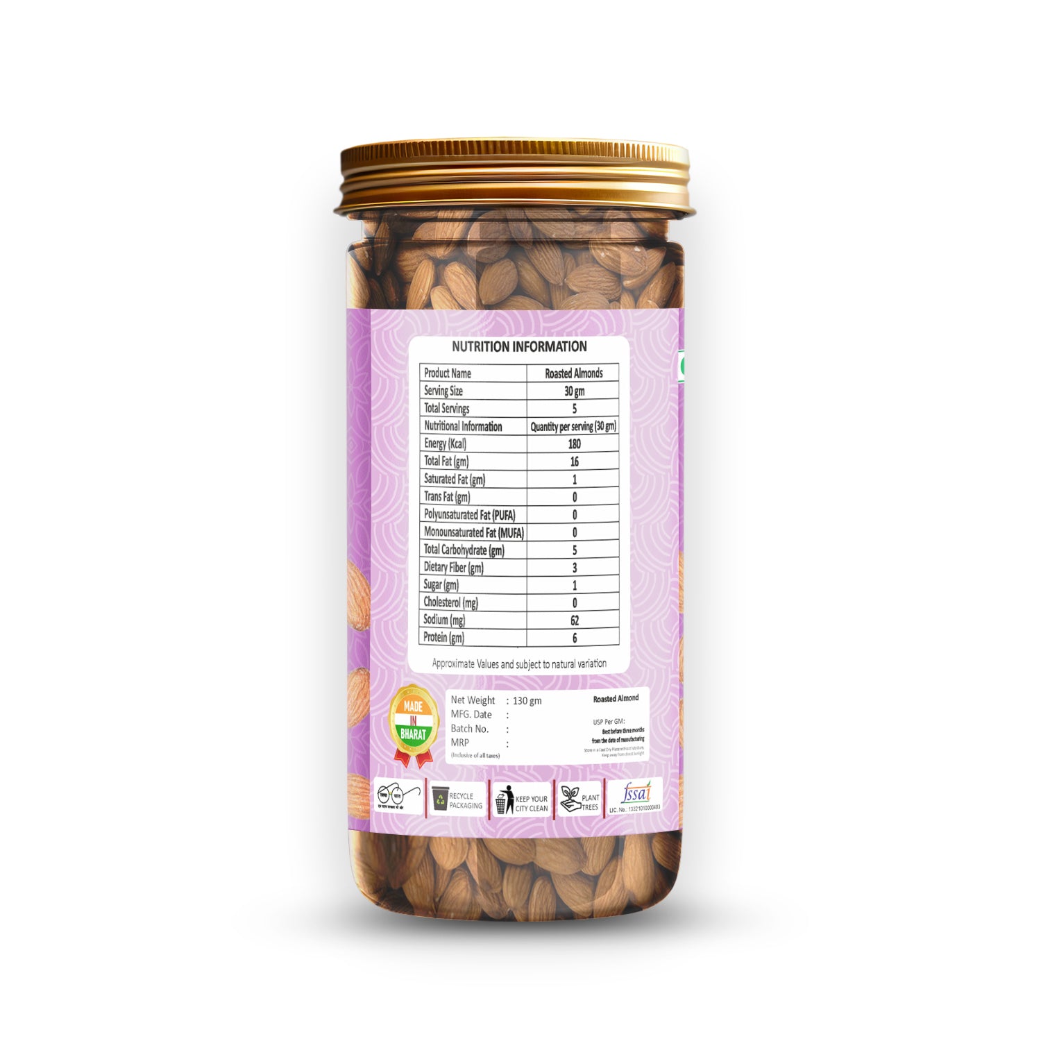 Ingredients: Almonds, Himalaya pink salt and edible vegetable oil