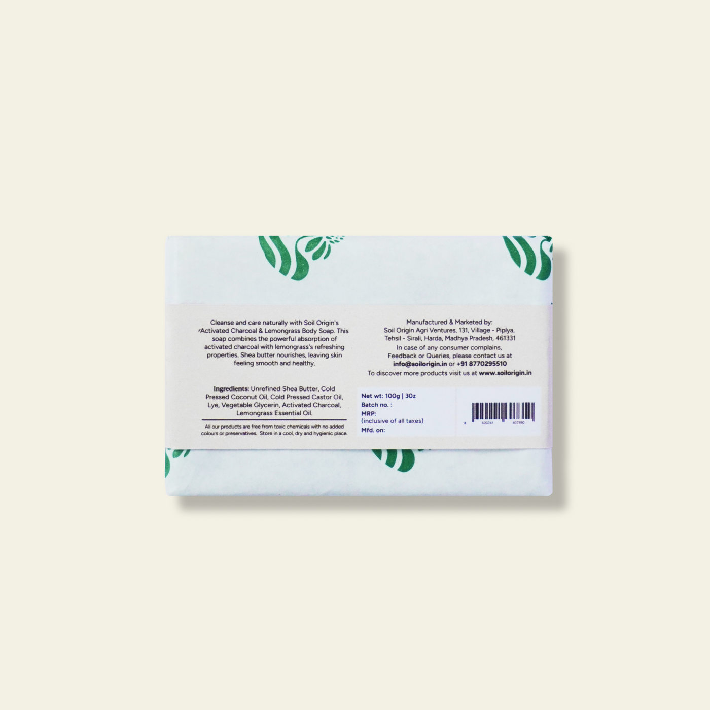 Soil Origin ⁠⁠Activated Charcoal & Lemongrass Body Soap (Shea Butter) - 100 Gm
