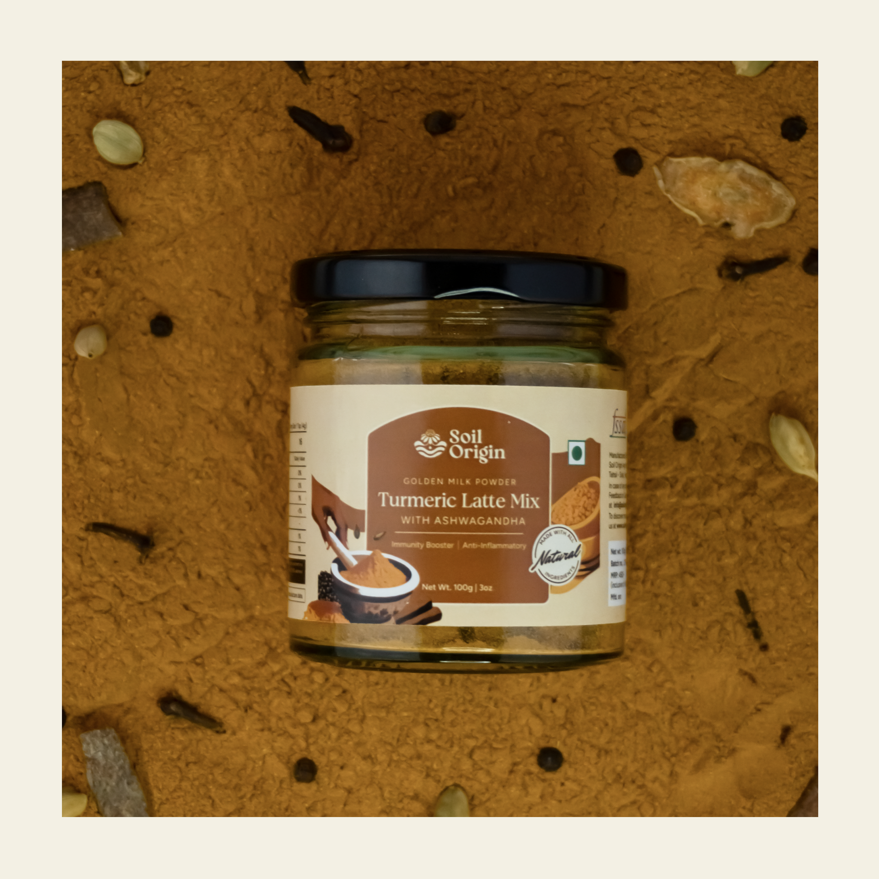 Soil Origin Turmeric Latte Mix With Ashwagandha (Goldern Milk Powder) - 100Gm