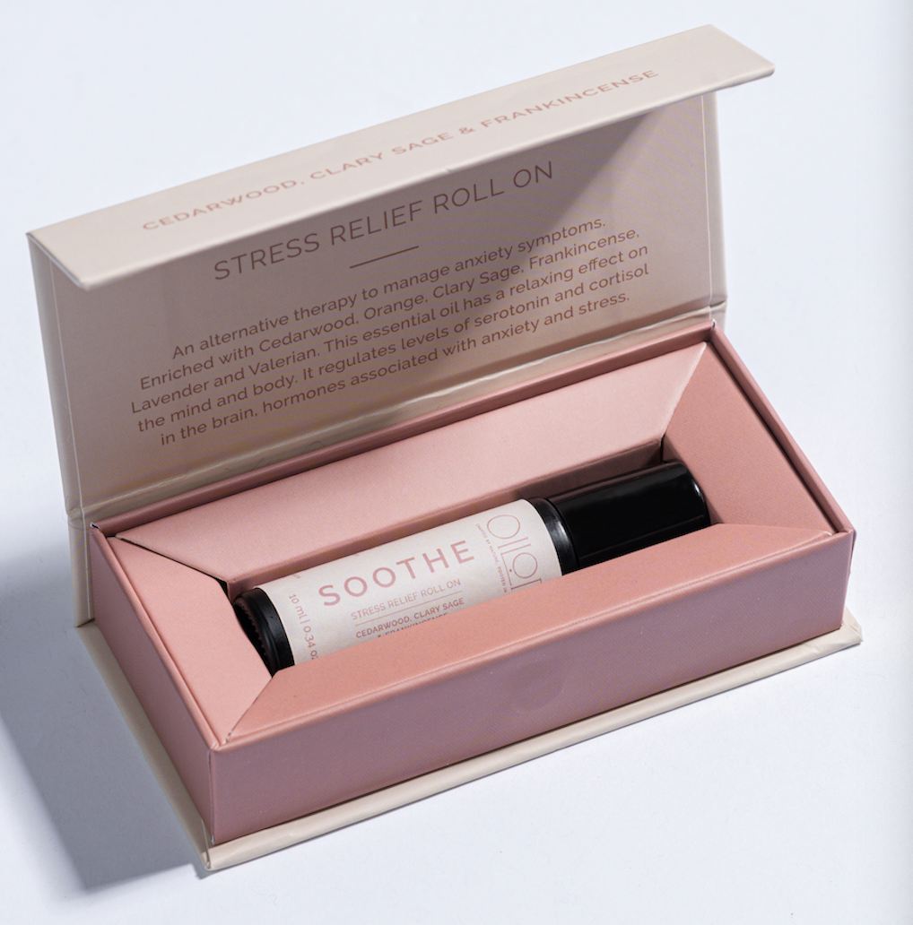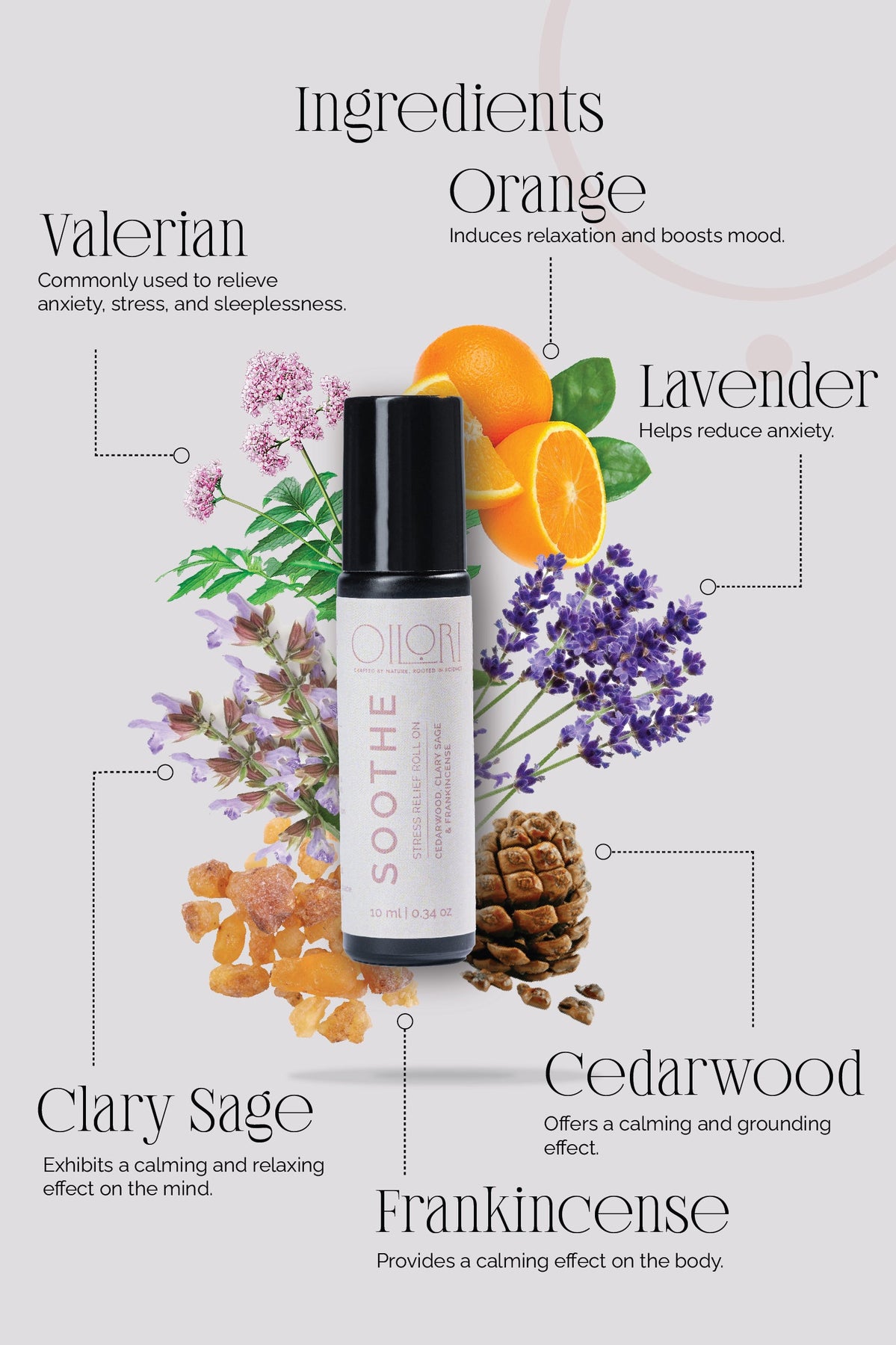 Stress relief roll-on is an alternative therapy to manage anxiety symptoms. Enriched with Cedarwood, Orange, Clary Sage, Frankincense, Lavender, and Valerian, this essential oil roll-on for stress relief has a relaxing effect on the mind and body. This stress relief roll-on regulates levels of serotonin and cortisol in the brain, hormones associated with anxiety and stress.