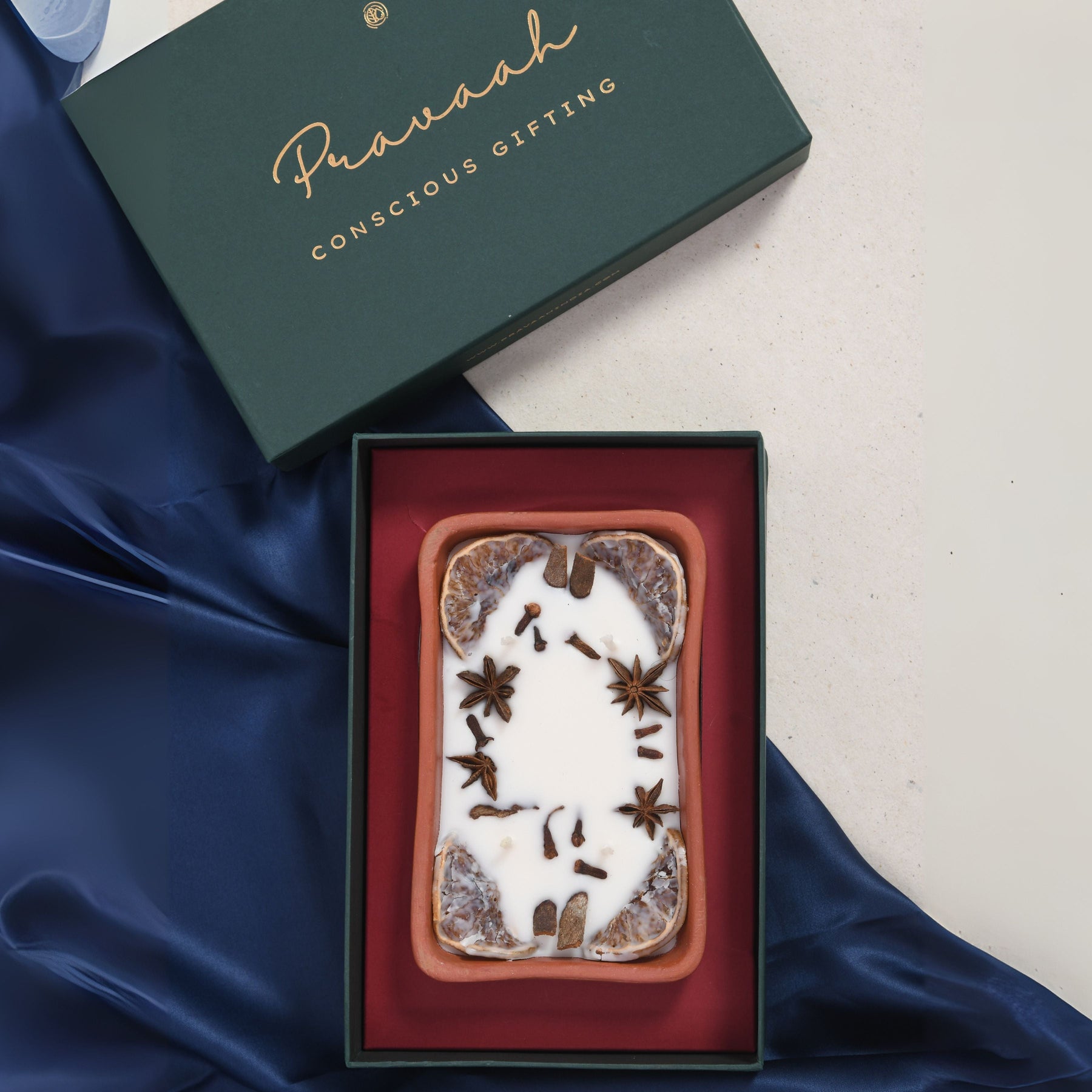 Pravaah Spice Route Hand Poured Soy Candle, 4 Wicks in Terracotta Bowl