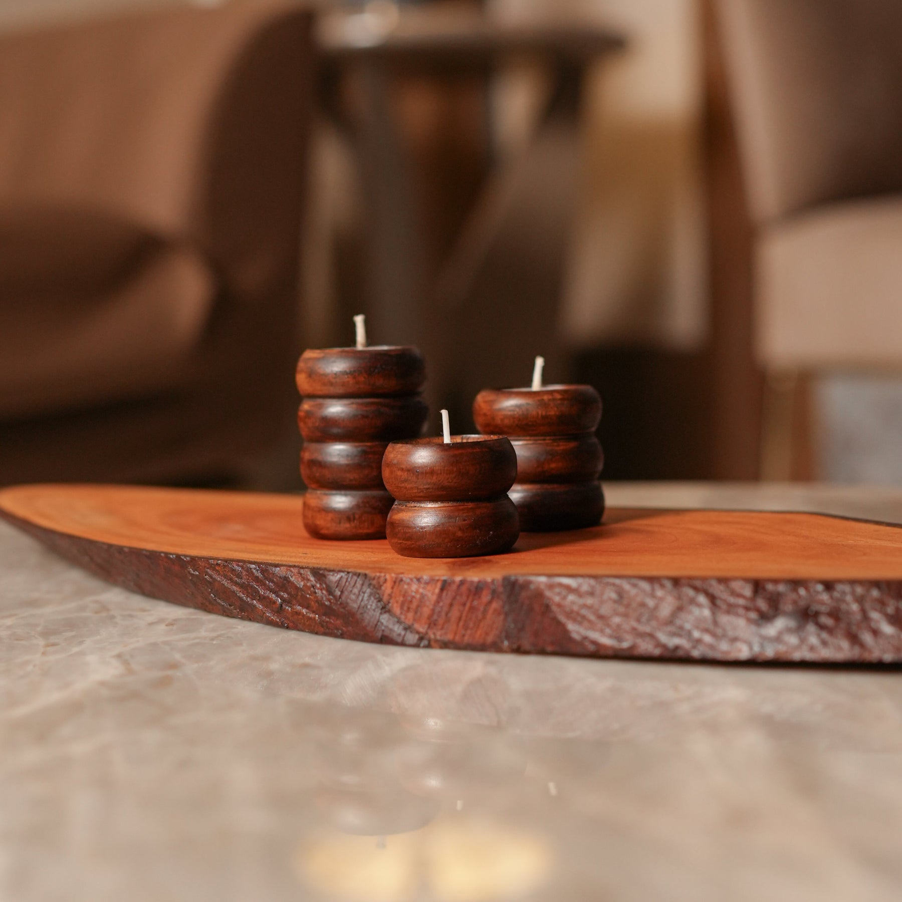 Spiral Glow Wooden Candle Stand Trio | Sustainable Festive Gift | Stackable & Reusable Tea-Light Holders | Handcrafted in Banaras