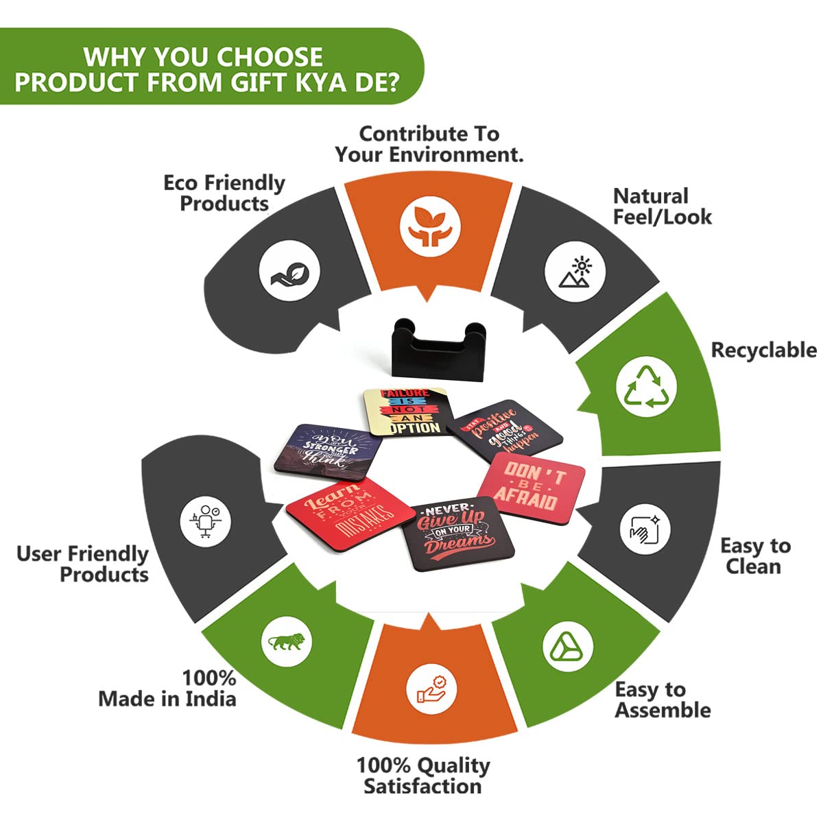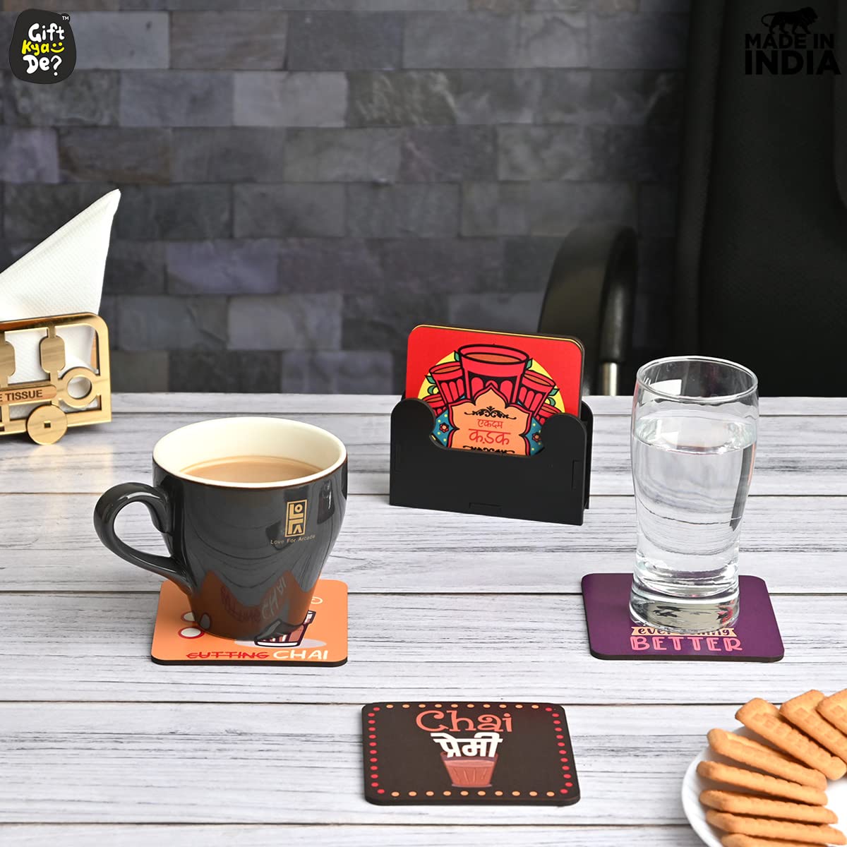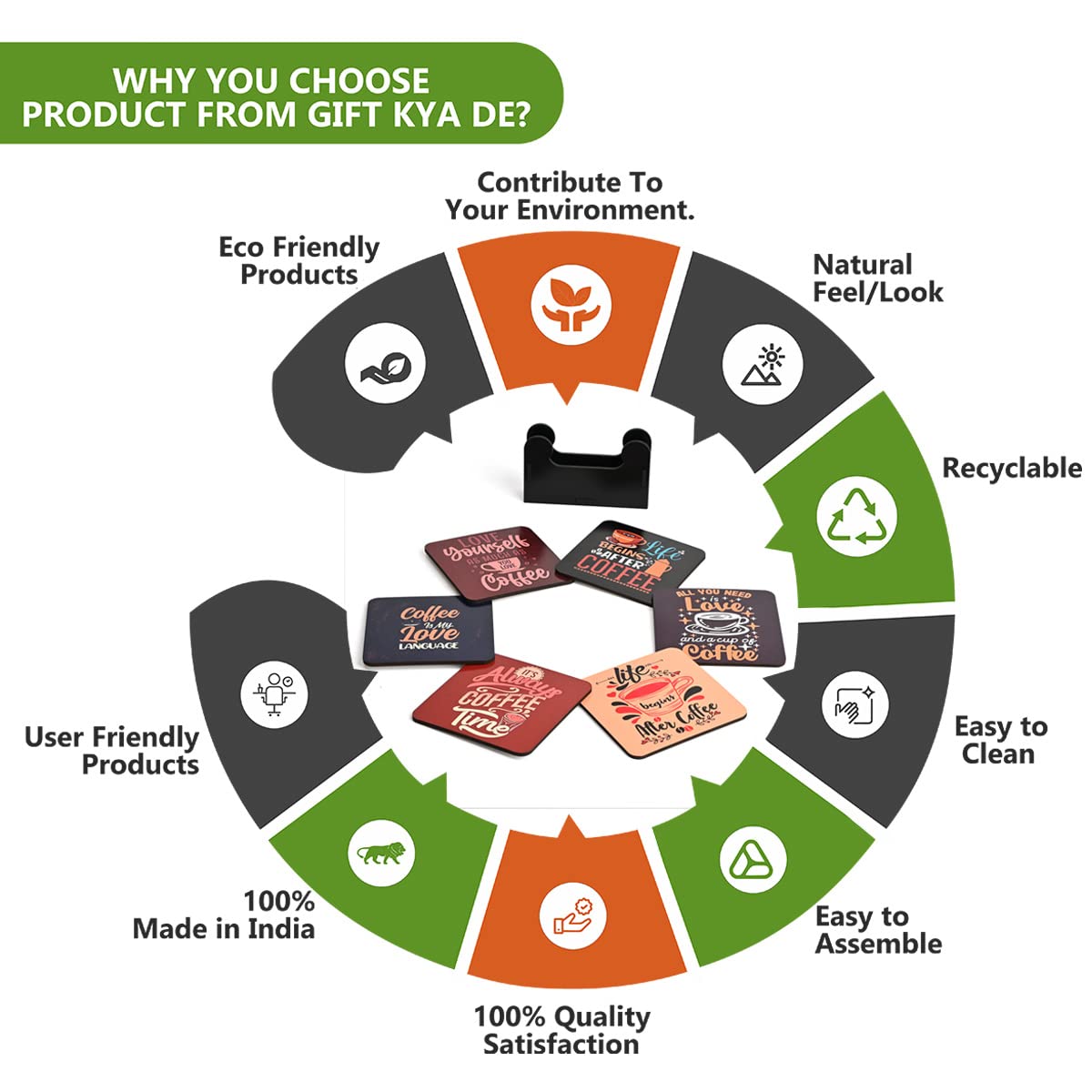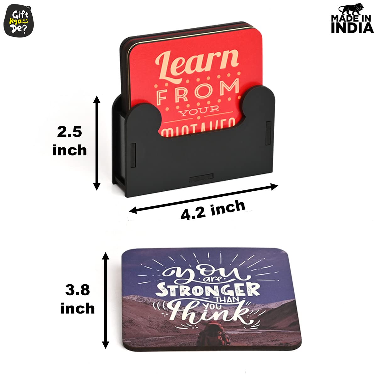 Gift Kya De Square Quotes Coaster Set of 6 With Coaster Stand | Quotes Coaster Set fit for Tea Cups and Coffee Mugs Also Coffee Lover Gifts