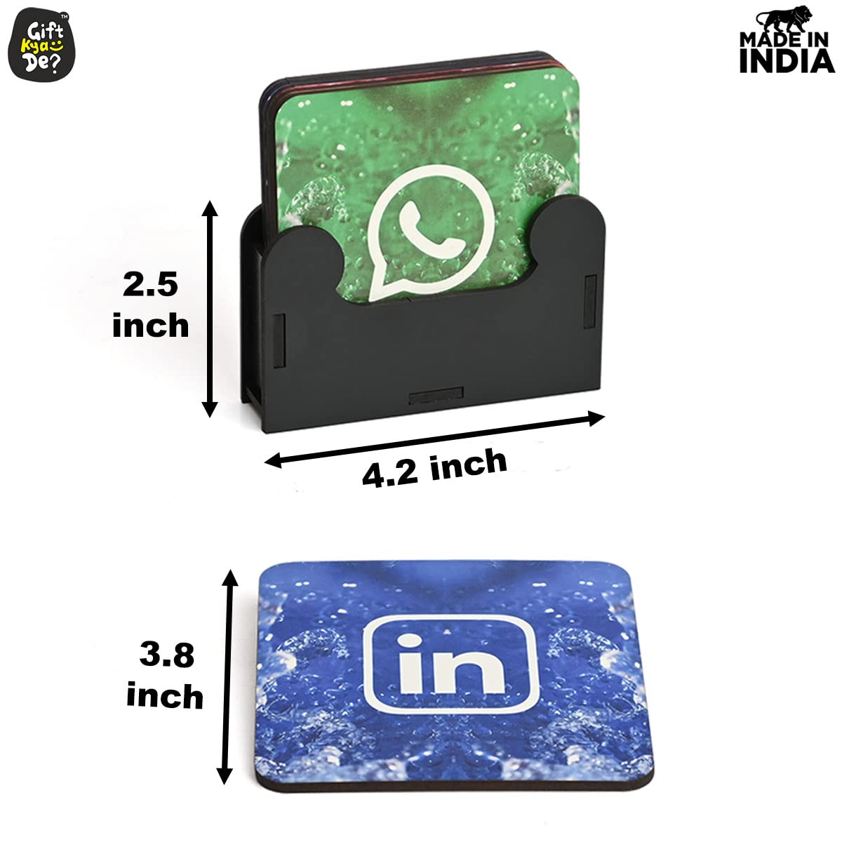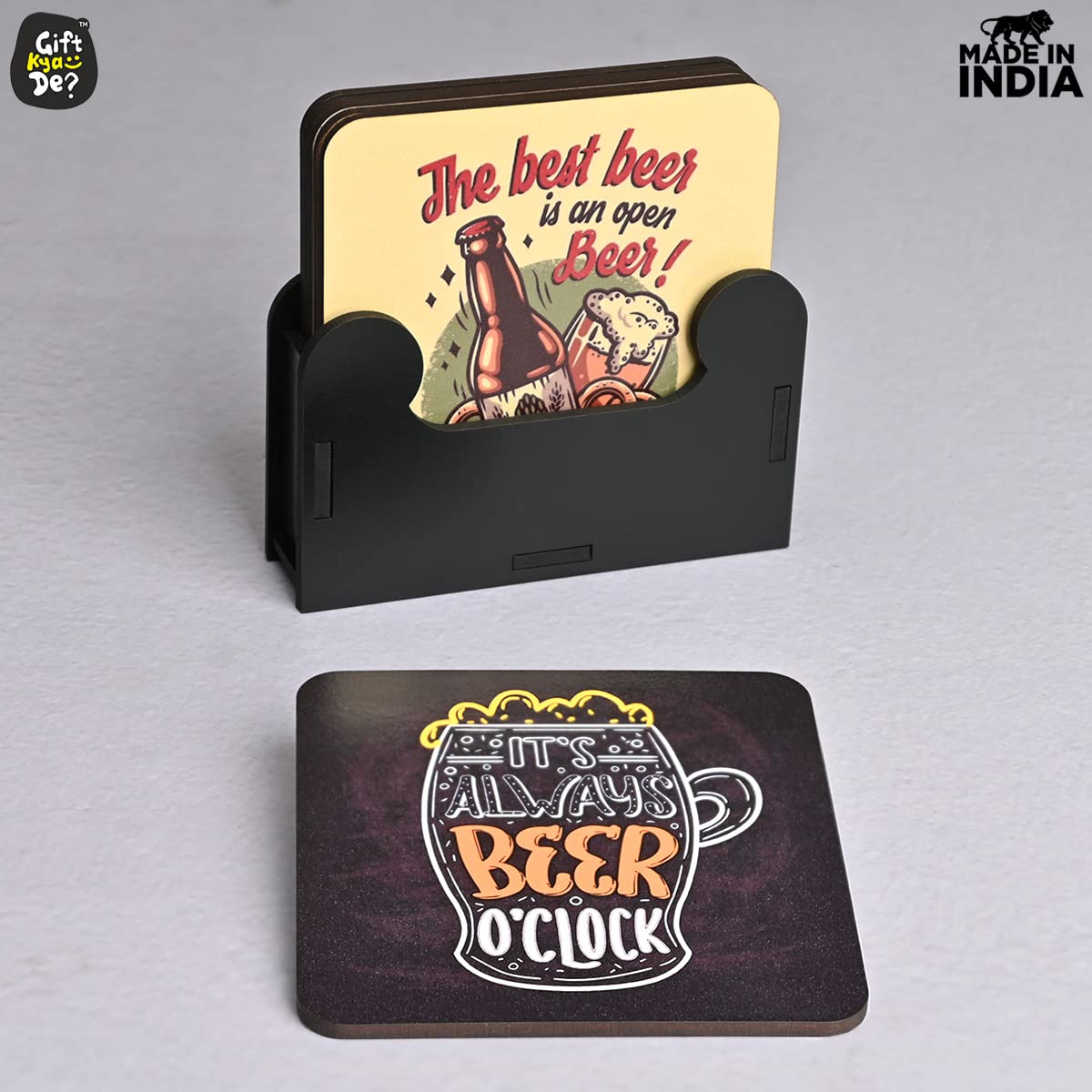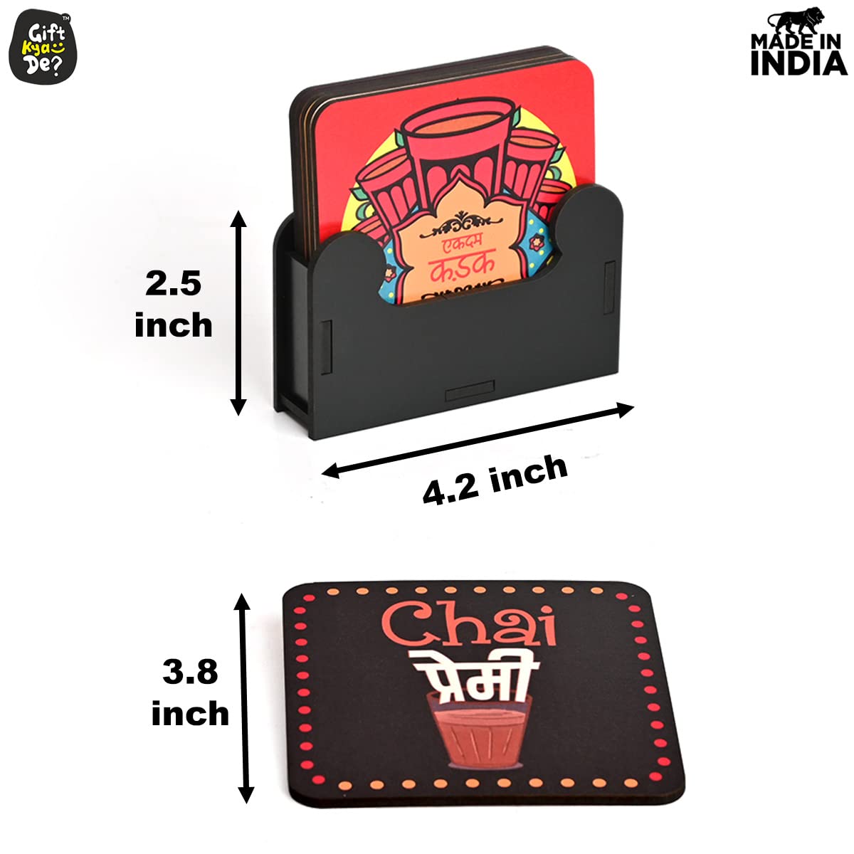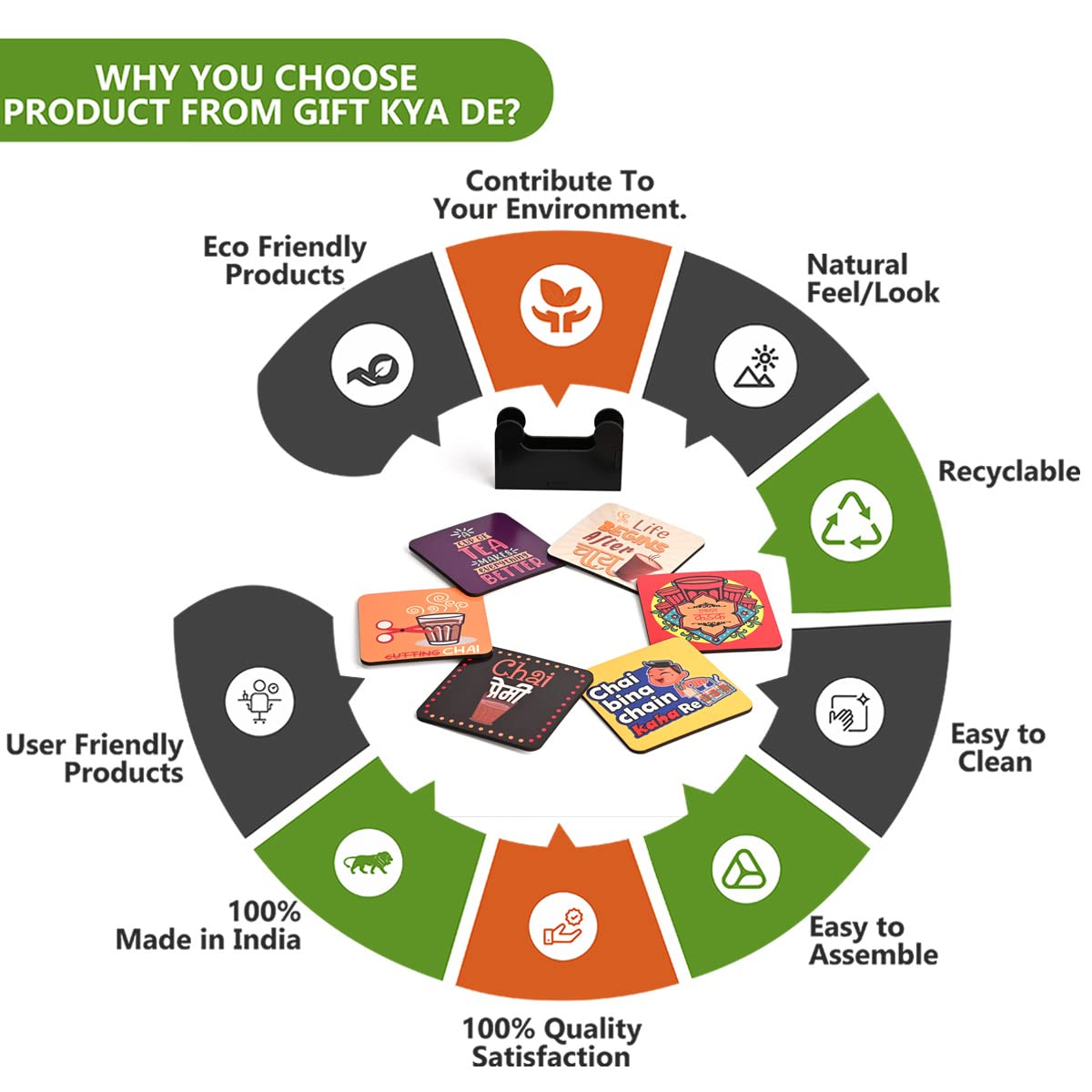 Gift Kya De Square Quotes Coaster Set of 6 With Coaster Stand | Quotes Coaster Set fit for Tea Cups and Coffee Mugs Also Coffee Lover Gifts
