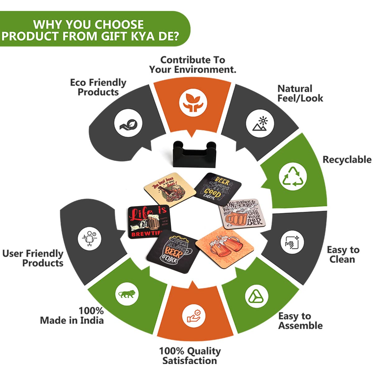 Build Quality: The coasters stand is a very strong and sturdy build quality made up of 3.2 mm polished MDF engineering wood to last longer and is light in weight, made with a quality product, and very easy to clean. Strong quality, not easy to break.