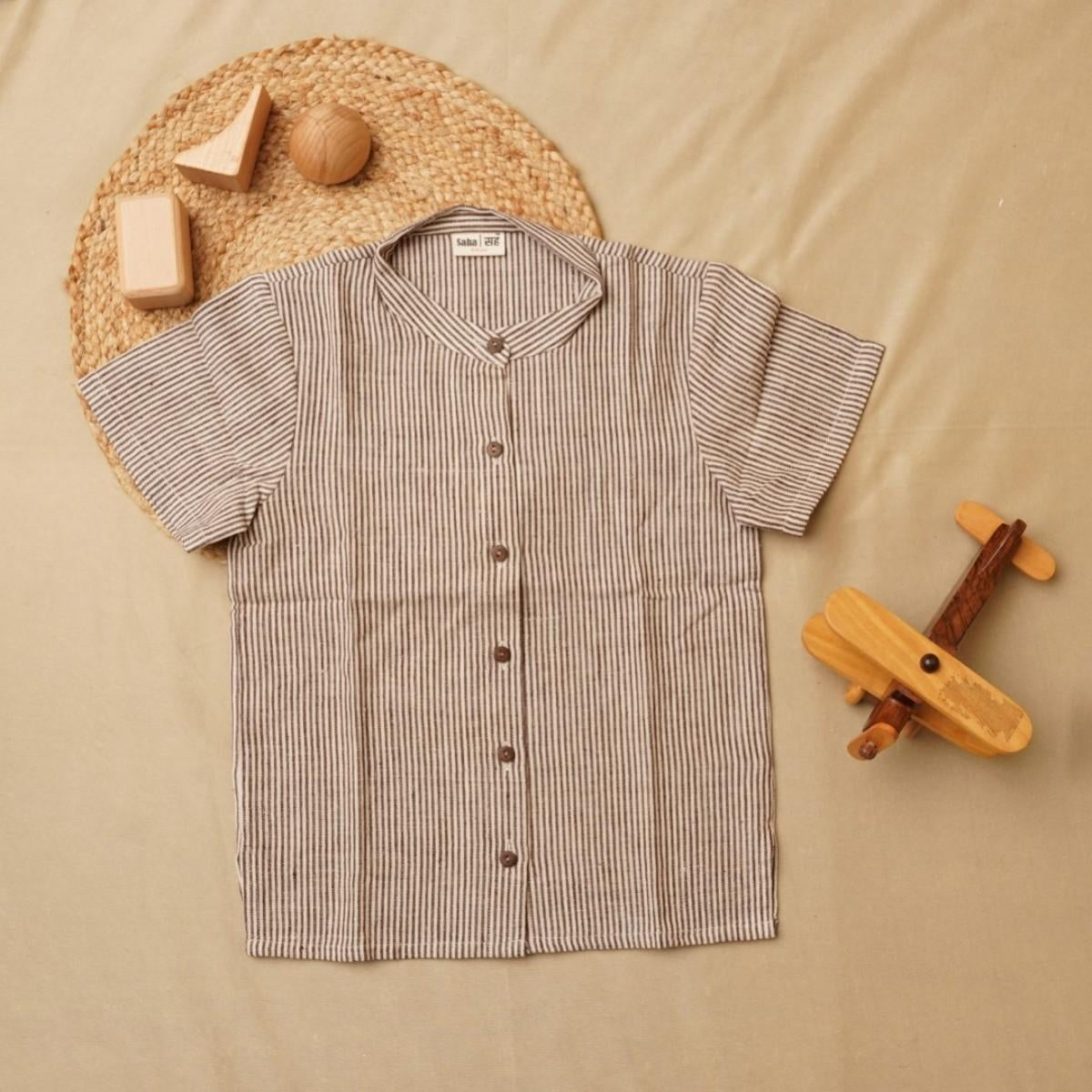 Introducing Stripes - Boys' Khadi Shirt - a perfect blend of style, comfort, and sustainability for your little one. Crafted from 100% natural hand-spun fabric, this stylish striped shirt can be paired with comfortable shorts or full trousers. Designed to be functional and elegant, this shirt is versatile for any occasion - from play times to party times. The breathable and hypoallergenic fabric is gentle on the tender skin of your child, making it suitable for all weather conditions.