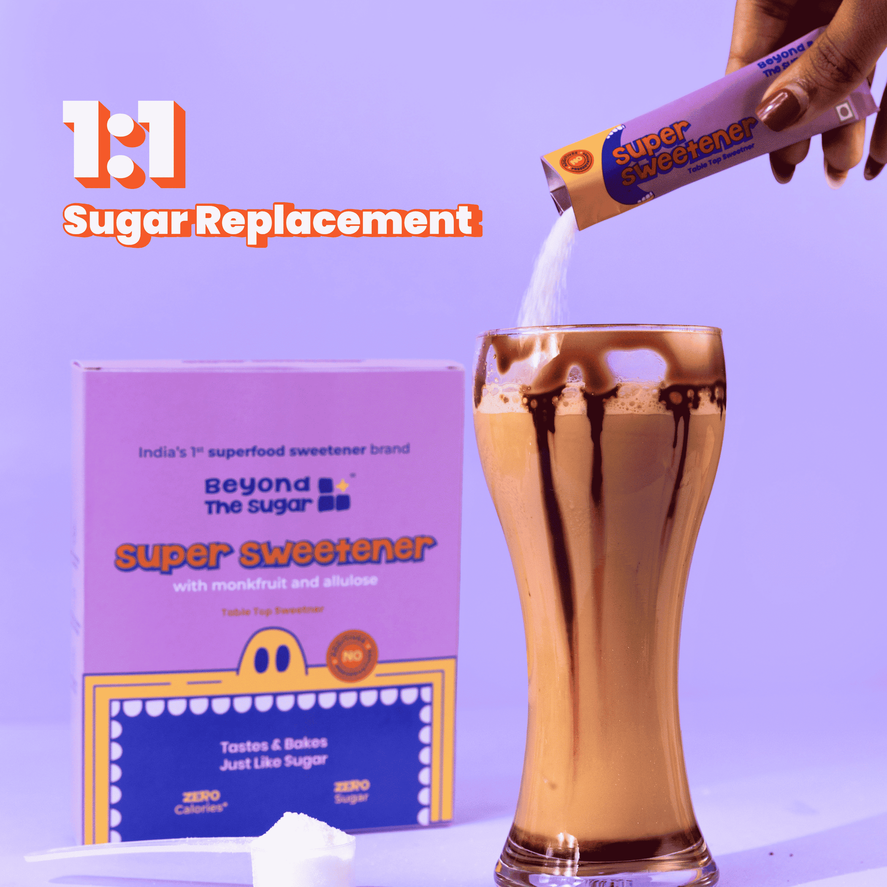 India’s first superfood sweetener. 100% natural and plant based sugar alternative which is a 1:1 sugar replacement. It tastes so good that you will leave sugar for good. A no-nonsense product with just 2 ingredients. 0 Glycemic index and ~0 calories