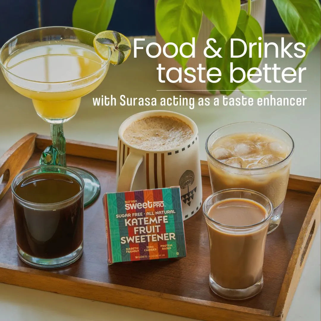 At Surasa, we believe that sweets and happiness are intrinsically linked to each other. SweetPro is for everyone looking to reduce their sugar intake without sacrificing on happiness. It is a guilt-free way to enjoy your favourite foods and drinks and support a healthier lifestyle, without any unpleasant aftertaste.