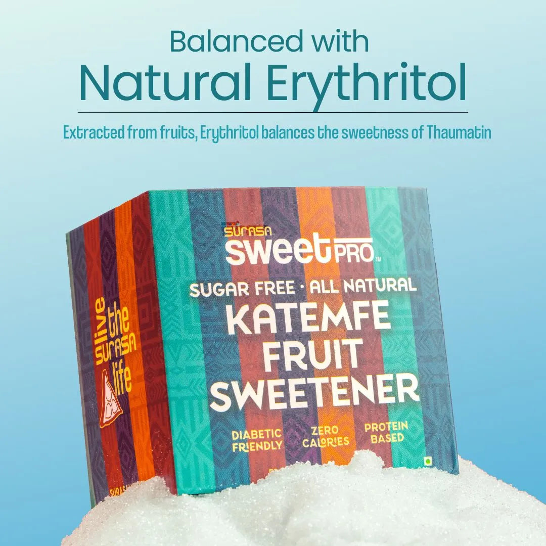 SweetPro is a natural sweetener made with thaumatin – a sweet protein extracted from the Katemfe fruit of West Africa. SweetPro is made with only natural derivatives, and has been carefully designed to be a healthier and safer alternative to sugar and other sweeteners, without compromising on taste.