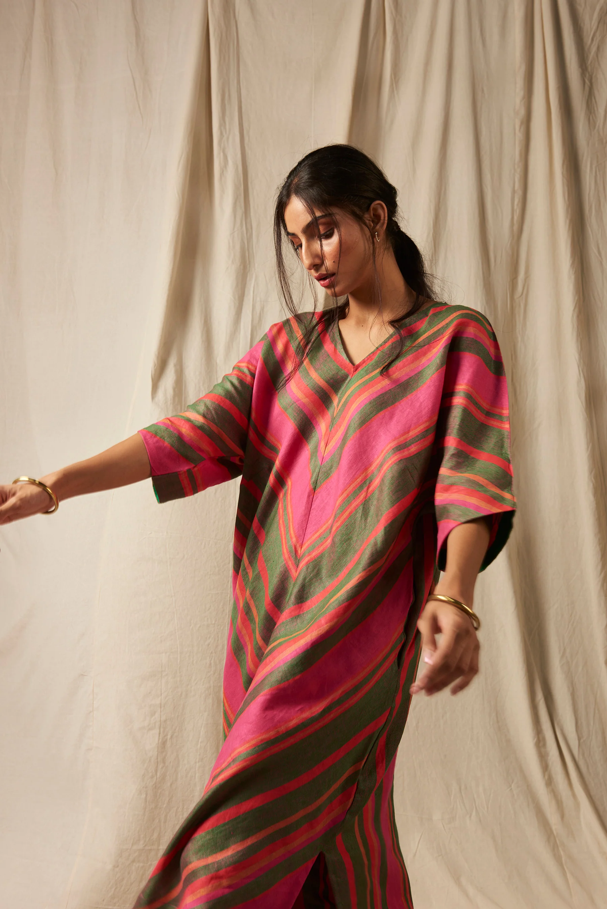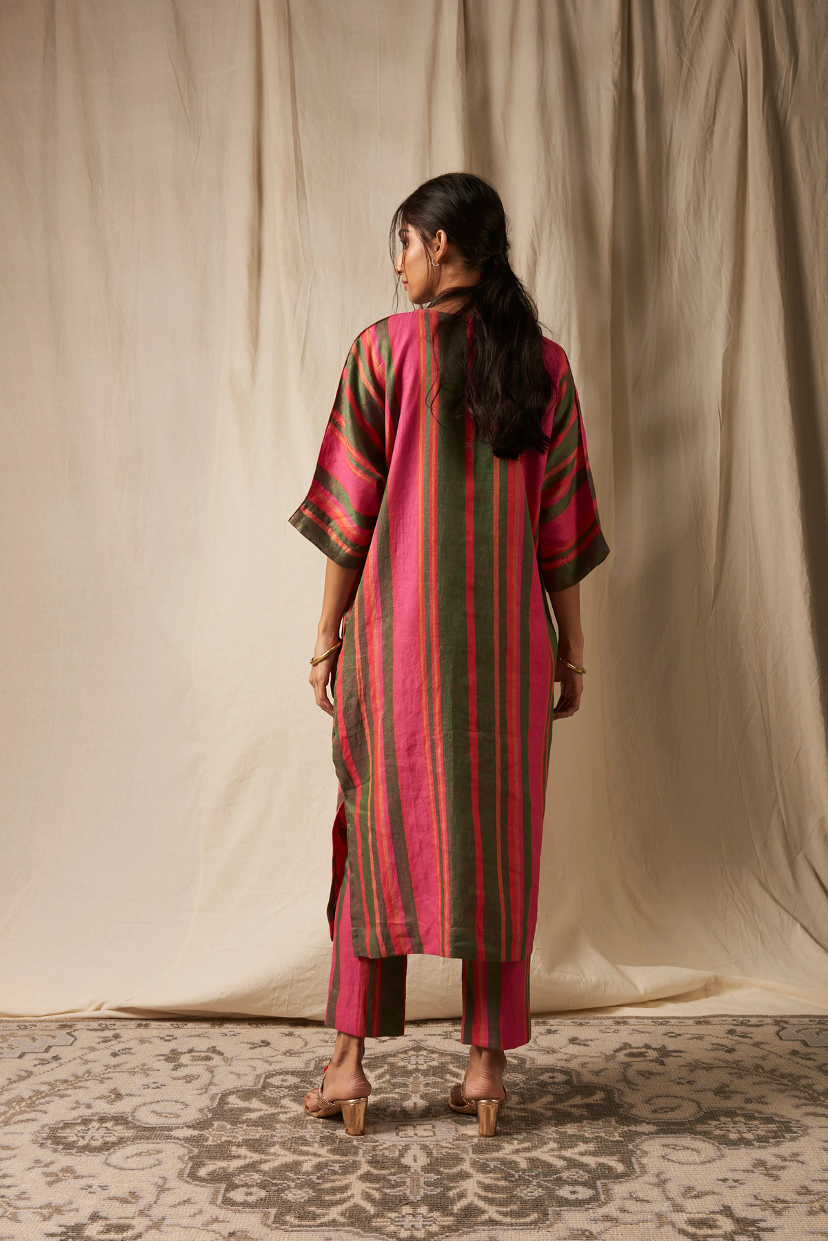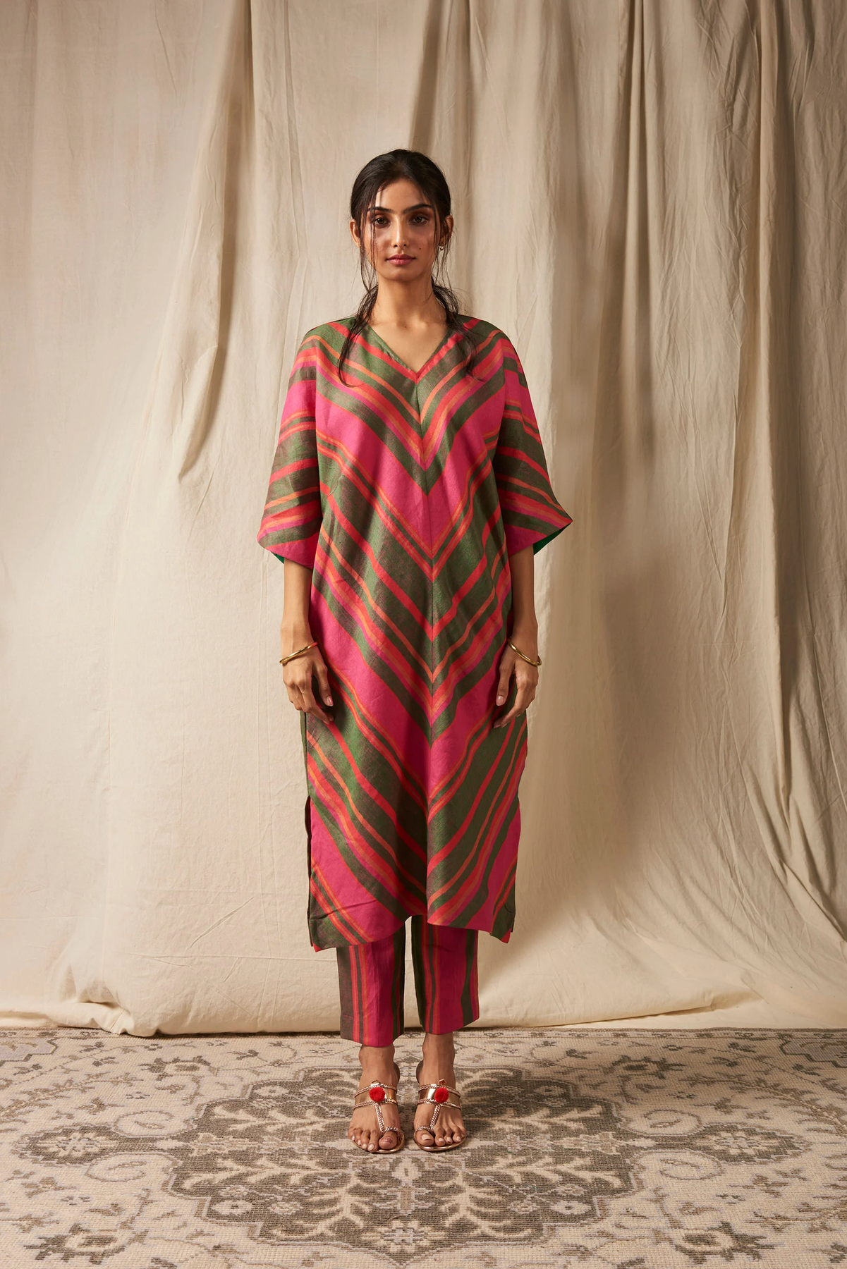 We can't get enough of the linen Dolman Kurta Set. A relaxed silhouette with slim pants in linen, enjoy the contrast hem details and slide your hands into the side-pockets to strike a pose this festive season. Here is the perfect outfit for long brunches, card parties and office get-togethers.