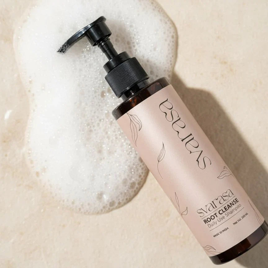 Svarasa’s Root Cleanse Daily Use Shampoo is a gentle yet effective scalp-purifying cleanser designed to purify the scalp, remove buildup and restore natural balance. Crafted with nature’s finest ingredients like Bhringraj, Amla, Shikakai, Reetha, Neem, Aloe Vera, Brahmi, Coconut Oil and Tea Tree Oil to give you shinier and healthier hair.