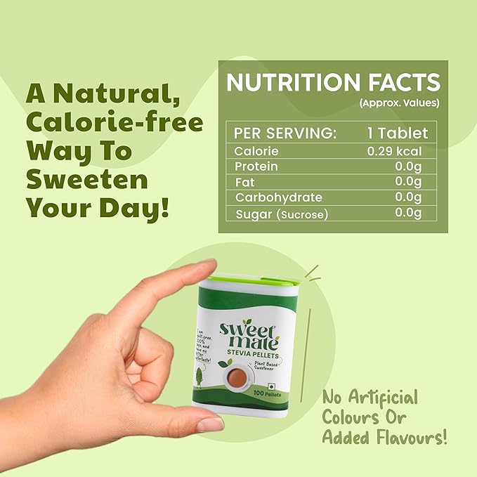 Sweetmate Stevia Tablets are made from 100% Natural Stevia and helps you to sweeten your beverages without compromising on health. Conveniently crafted to dissolve quickly, they provide the sweetness you will love. Bid Farewell to the traditional sugar that makes you concerned and embrace a healthier, natural way to fulfil your sweet cravings. Your pathway to guilt-free sweetness is ready! Try it today and experience the magic of Sweetmate Stevia. Make the switch to welcome a healthier lifestyle where every sip guides you to the path of Zero Calories.