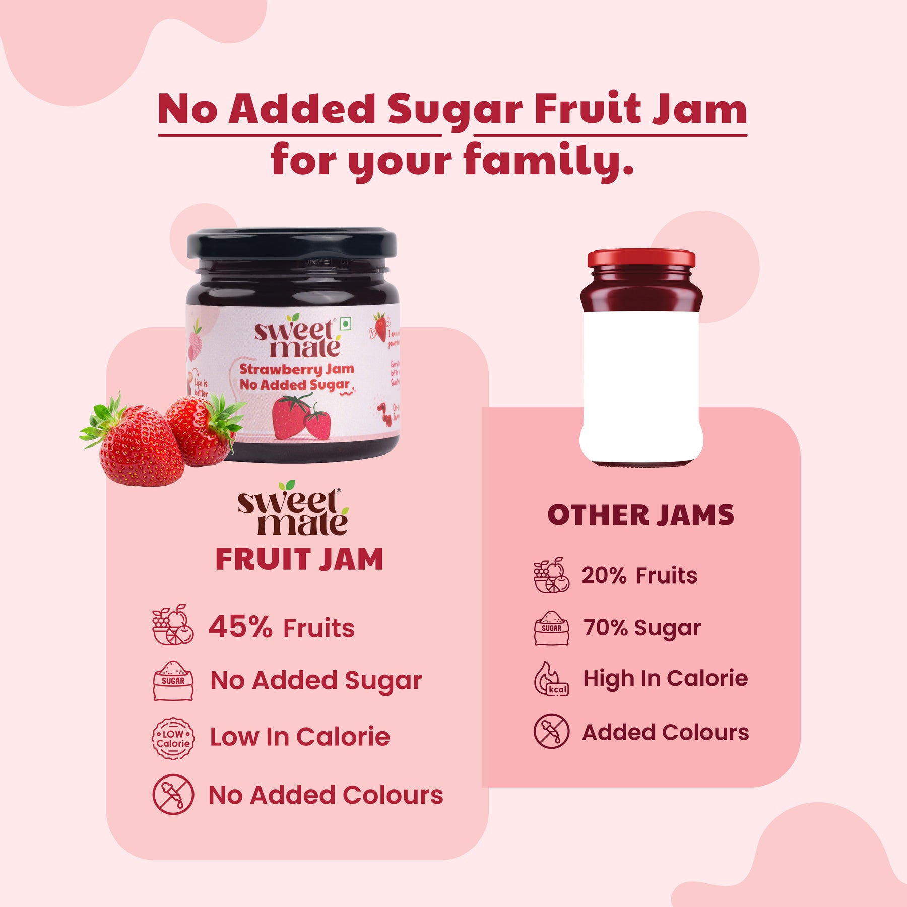 Sweetmate No Added Sugar Strawberry Jam - (220g) | With Real Fruits | Diabetic and keto Friendly